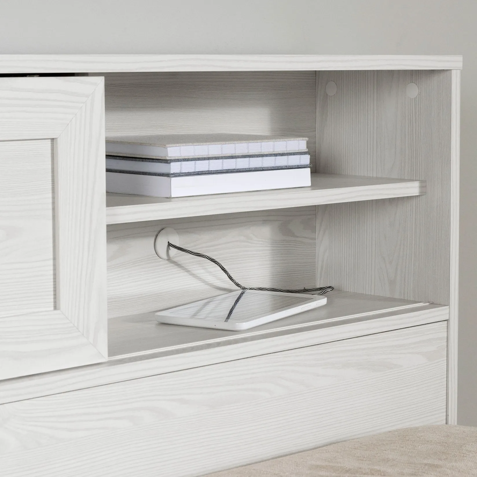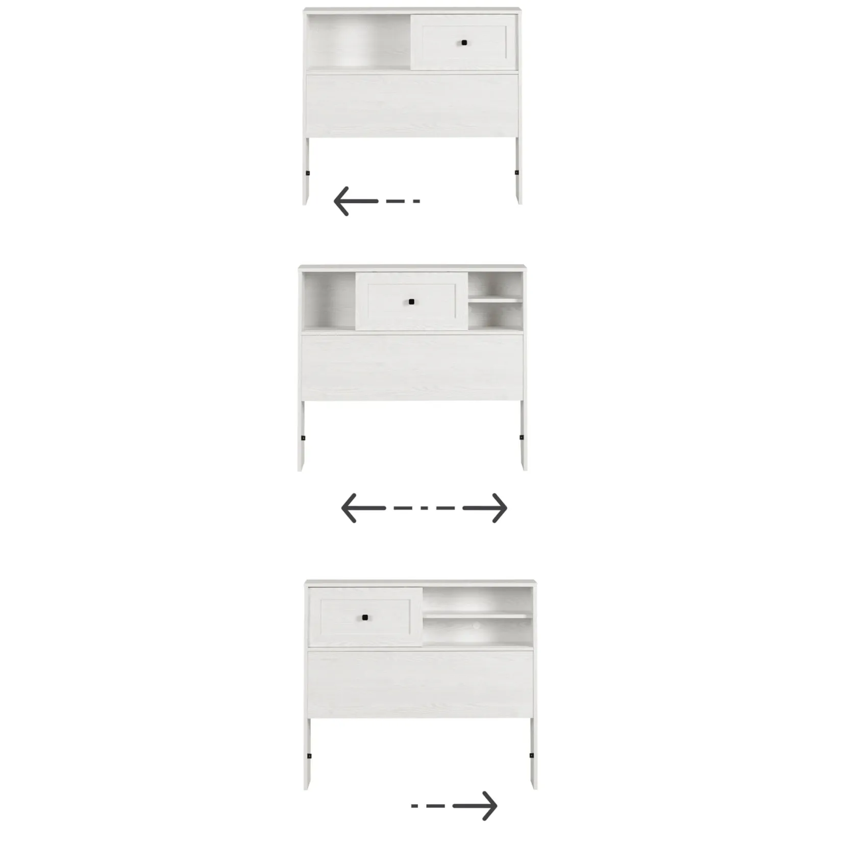 VERSATILE STORAGE: With its sliding door on plastic runners, this headboard offers both open and closed storage. Your child can hide their clutter behind the door while displaying their best items on the fixed shelf for all to see.
