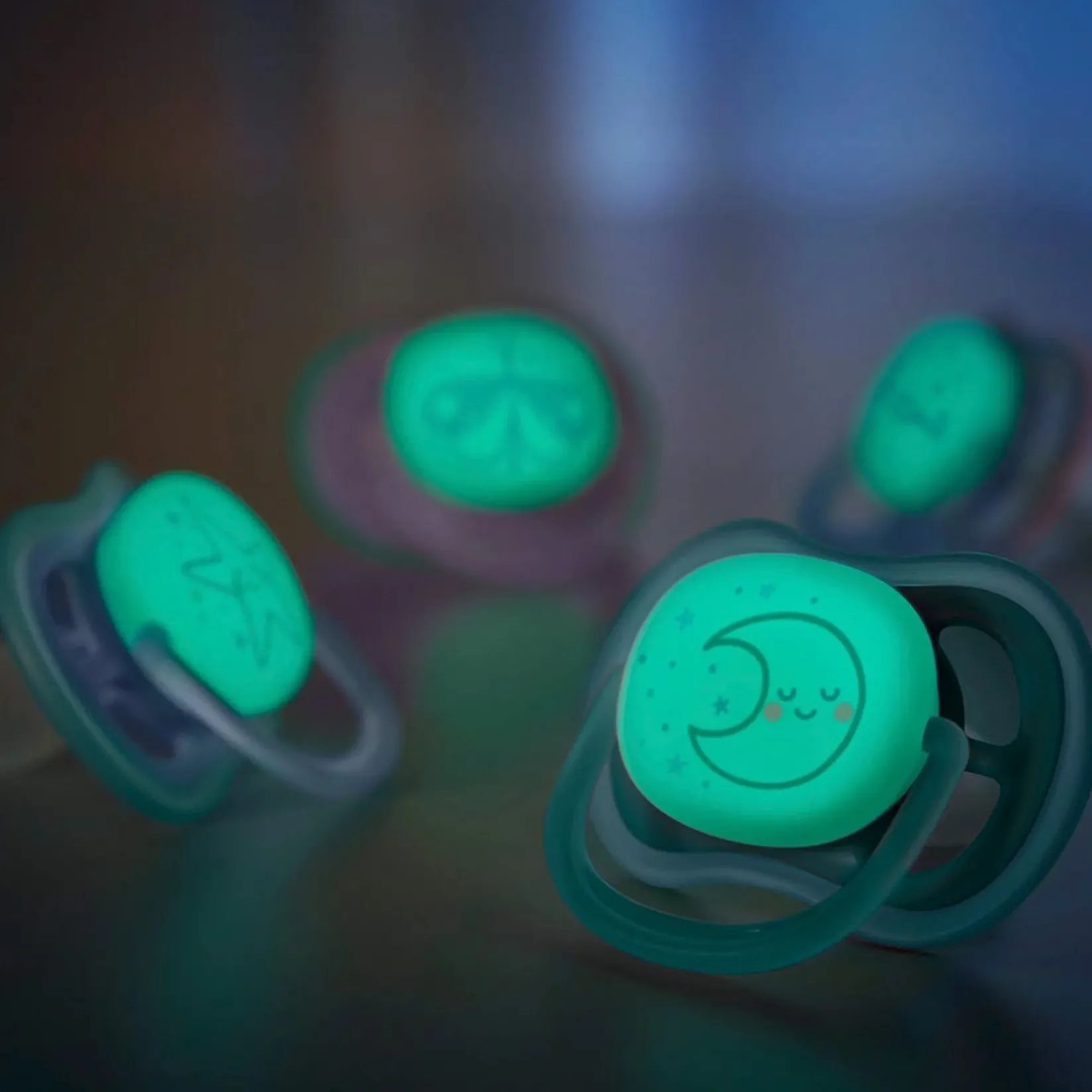 The Philips Avent Ultra Air pacifier for babies 6-18 months has a long lasting glow, so it’s easy to find in the dark. It’s designed with a lightweight, breathable shield for baby’s sensitive skin.
