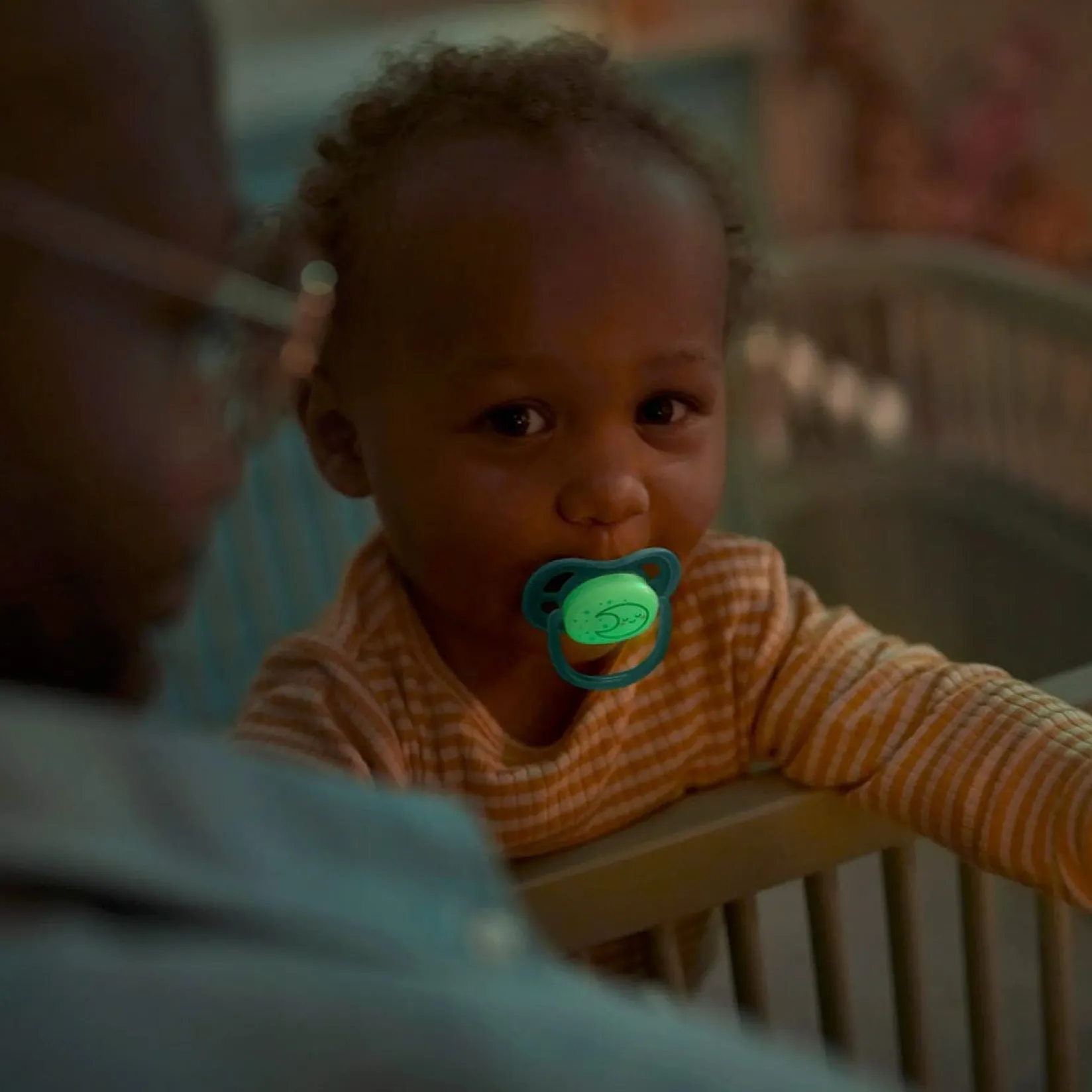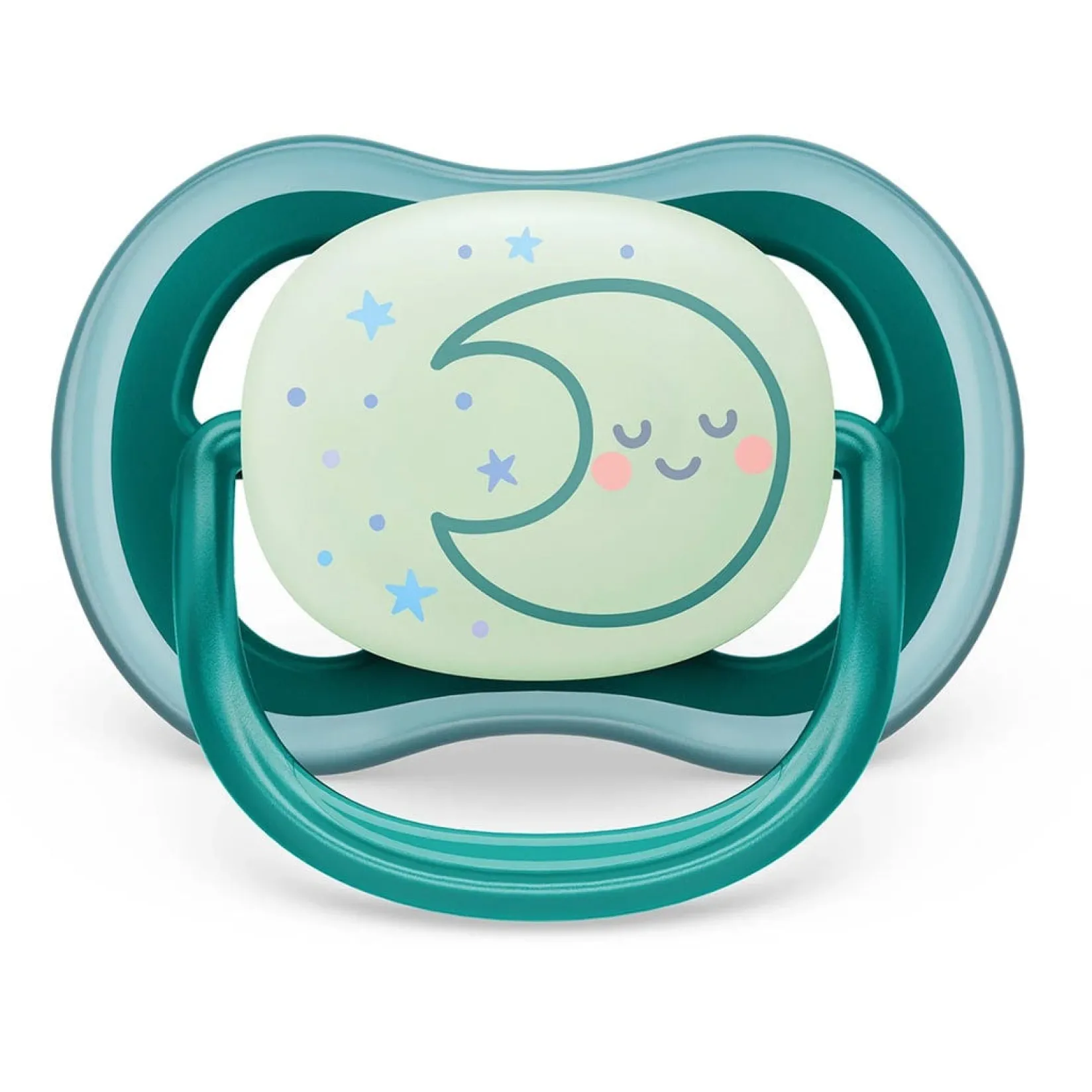The Philips Avent Ultra Air pacifier for babies 6-18 months has a long lasting glow, so it’s easy to find in the dark. It’s designed with a lightweight, breathable shield for baby’s sensitive skin.