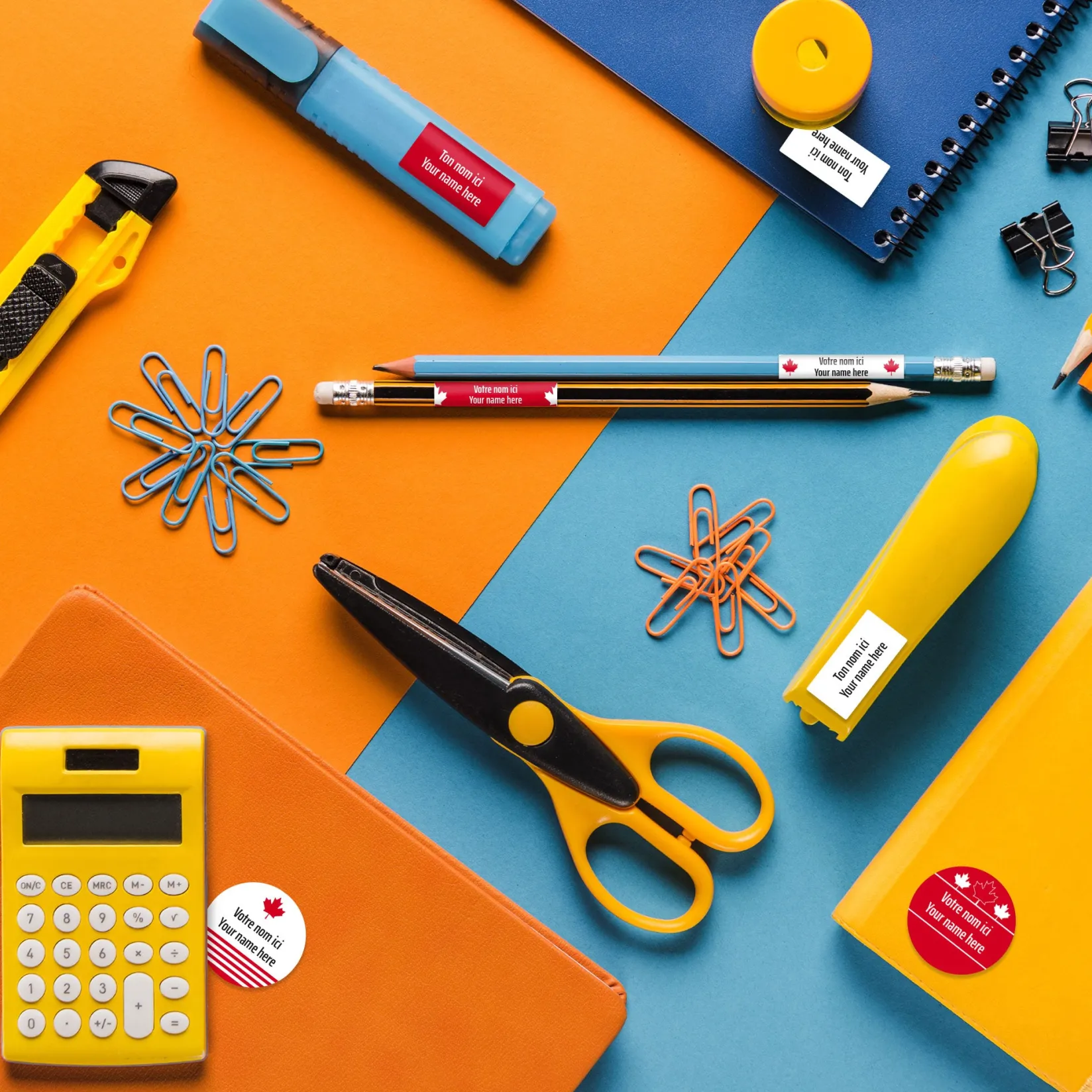 The set of personalized sticky labels ClĂ©ment becomes your best ally for the quick identification of your family’s personal items. In a few seconds, young and old will be able to recognize their school items, lunchbox items, sports equipment, shoes, clothes, etc. Waterproof and durable, the labels are not afraid of freezing, water, heat, or steam. They are resistant to the microwave, refrigerator, freezer, dishwasher, washing machine, and dryer.