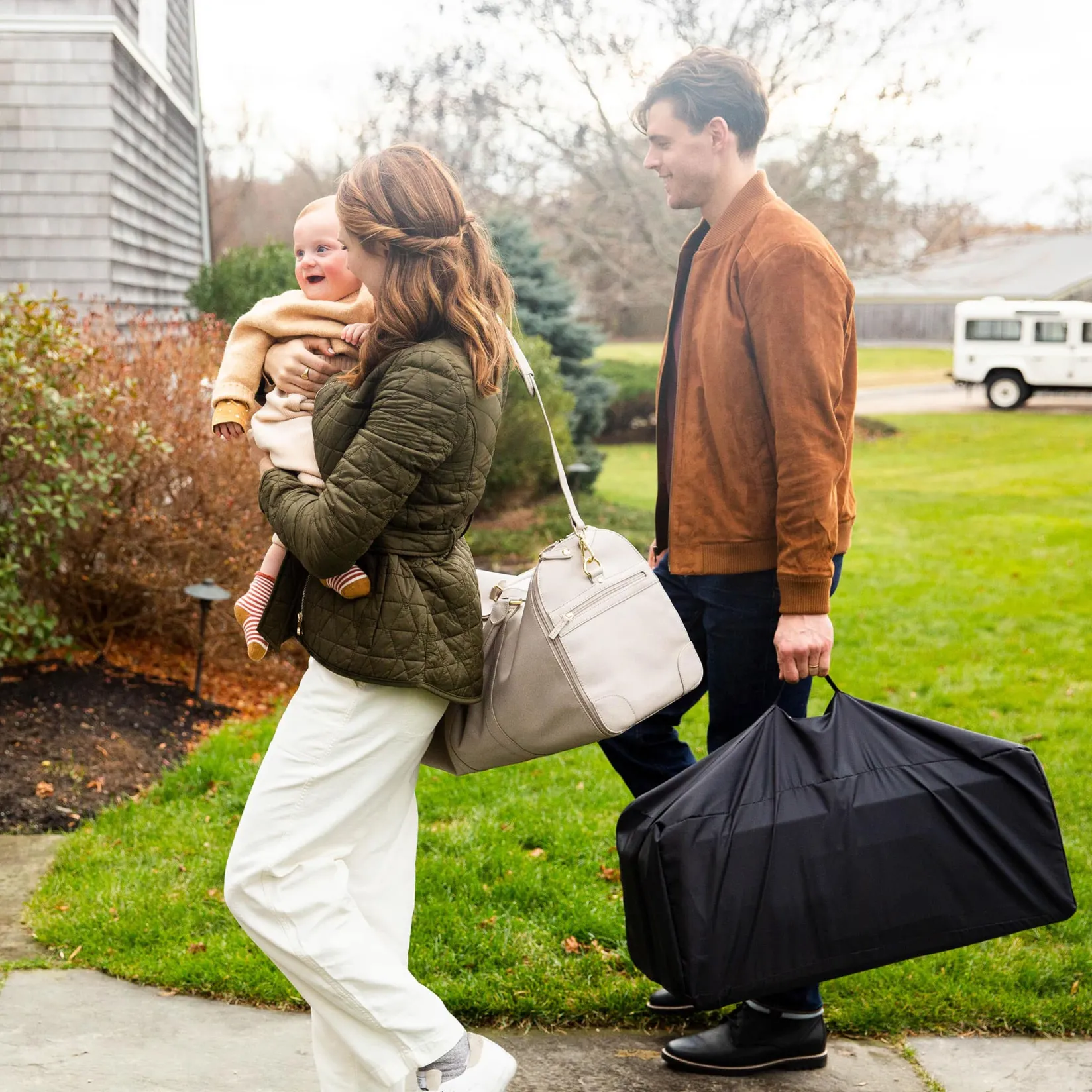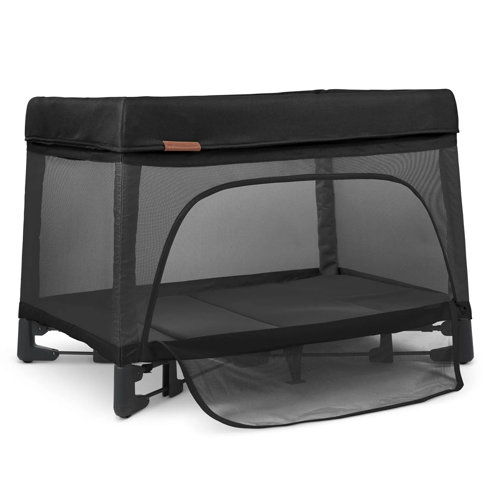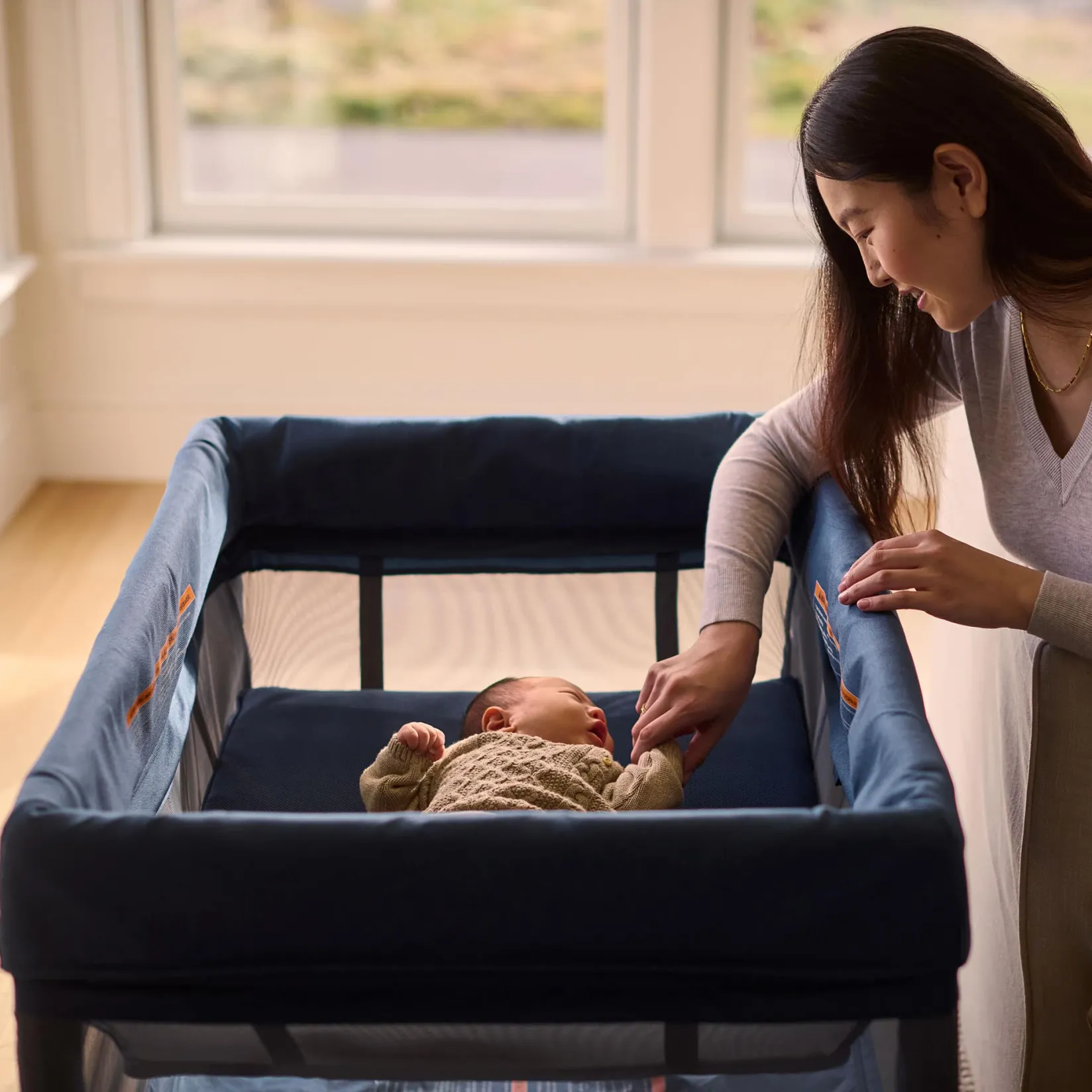 -Zip on mesh bassinet provides a ventilated, elevated bedside solution