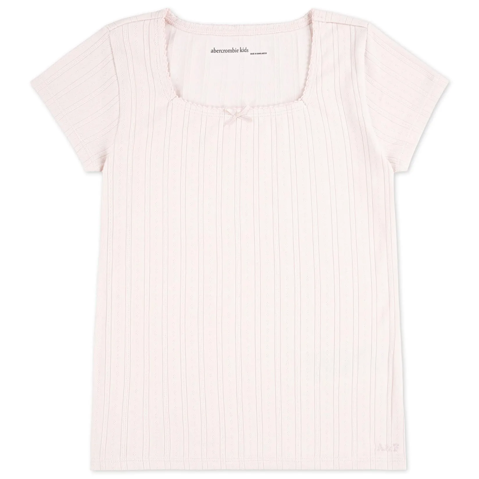 Upgrade your child’s wardrobe with A&F’s Pointelle Square Neck Tee. This trendy top features a chic square neckline and short sleeves, perfect for any occasion. Made from soft, stretchy Pointelle fabric, it offers both style and comfort for your fashion-forward kid.