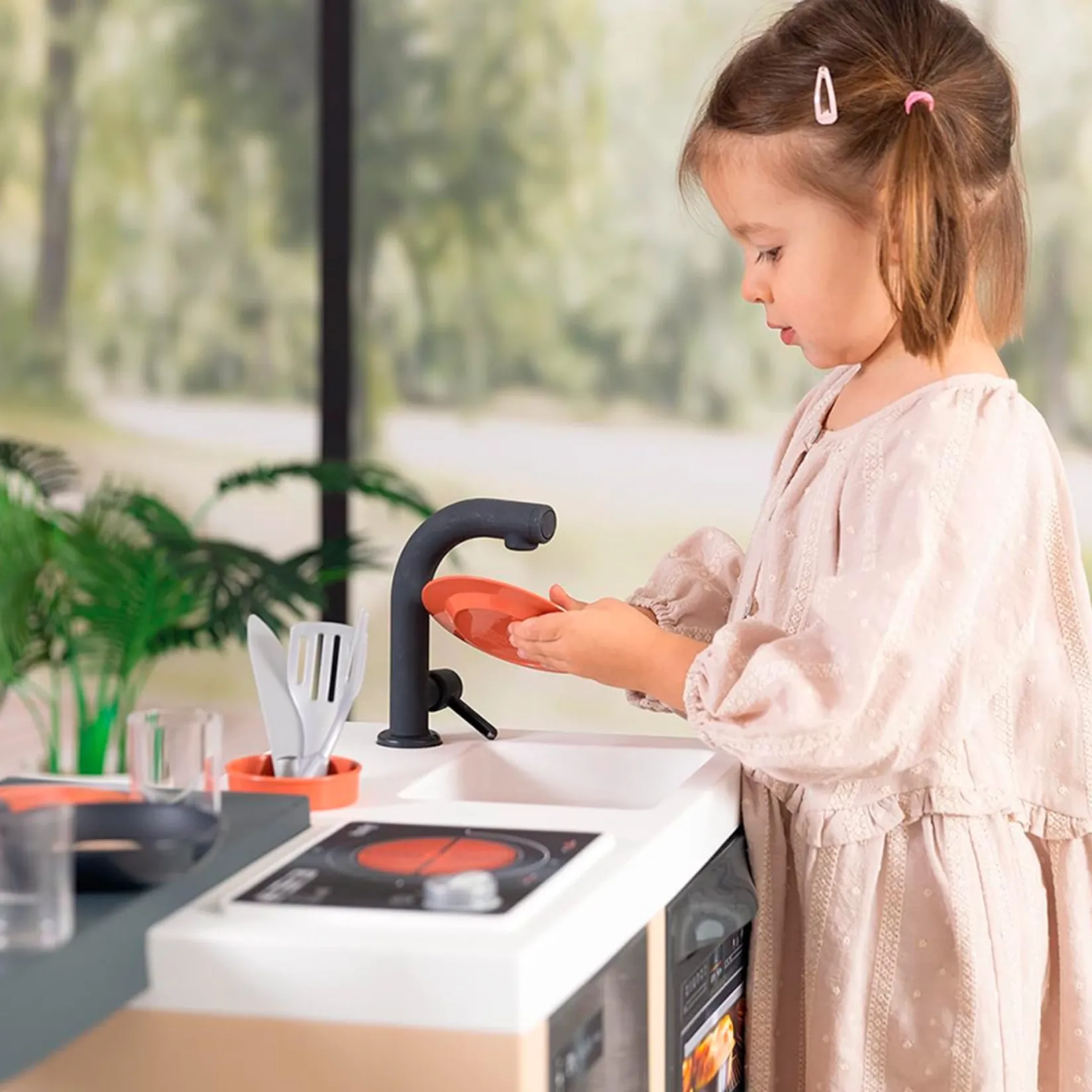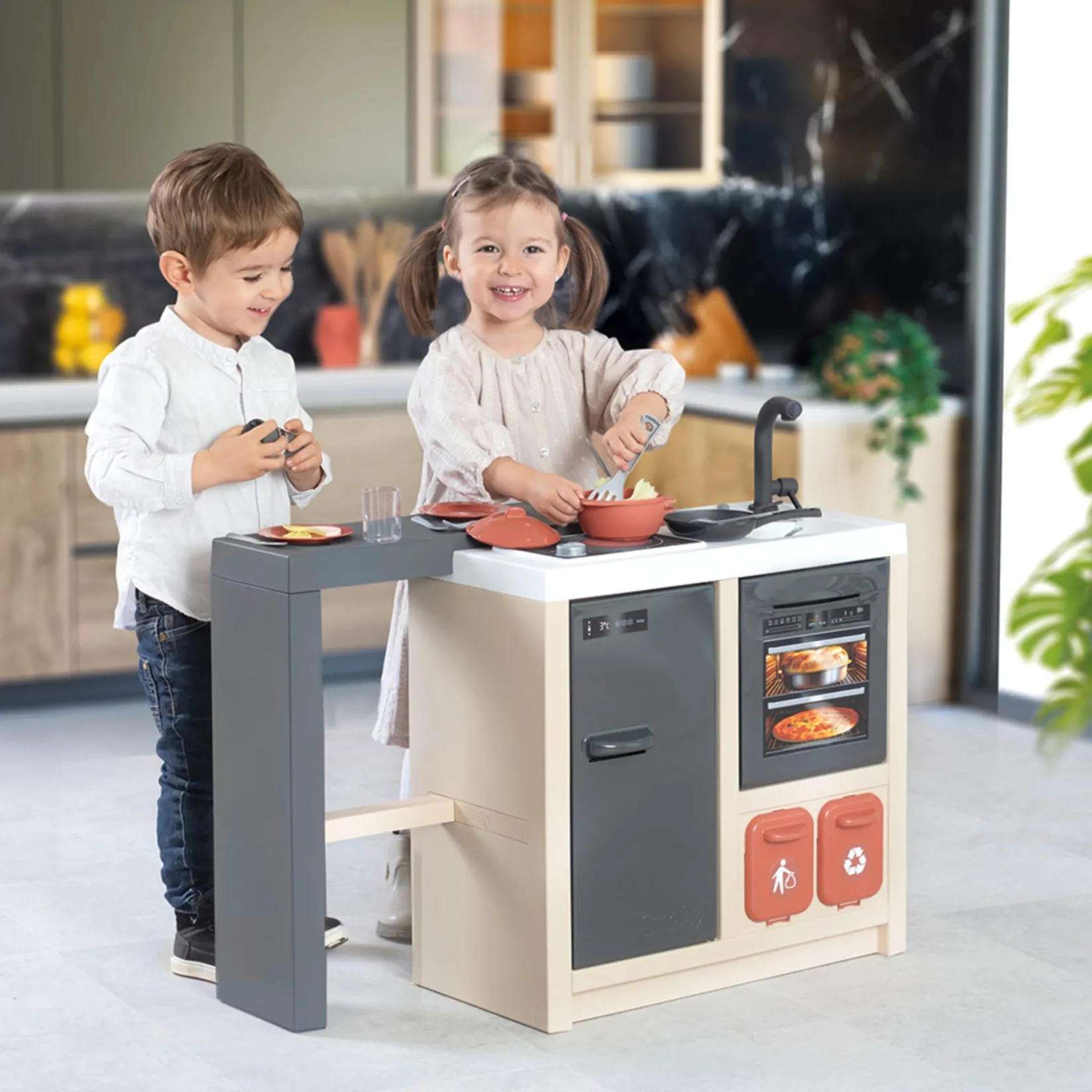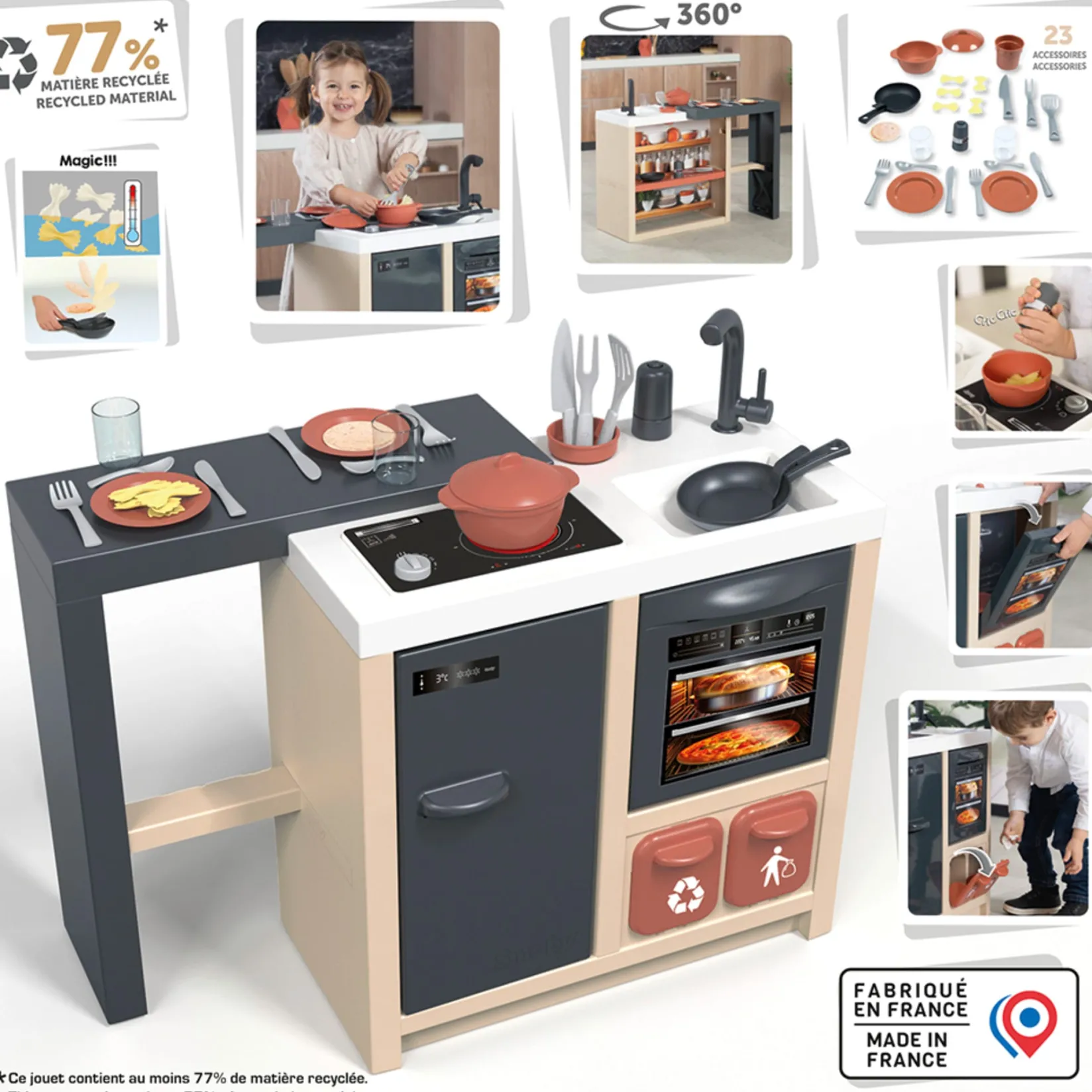 A kitchen island with a large 360° play surface—perfect for little chefs! Packed with playful features to spark imagination and role-play.