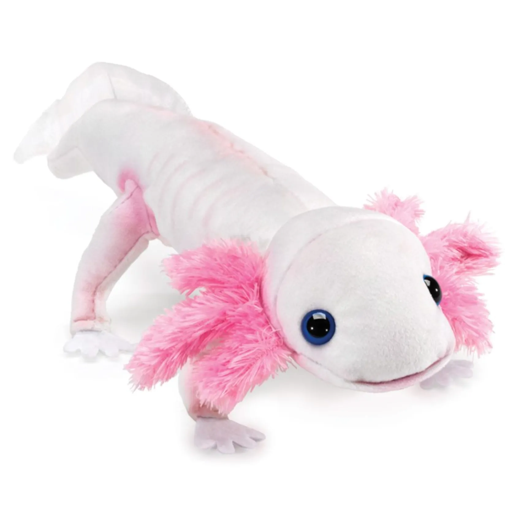 The Folkmanis® Axolotl puppet is a fascinating marine salamander will feathery pink gills, soulful eyes and movable head and tail. Recently a viral social media meme, this adorable yet endangered creature will inspire your natural curiosity.