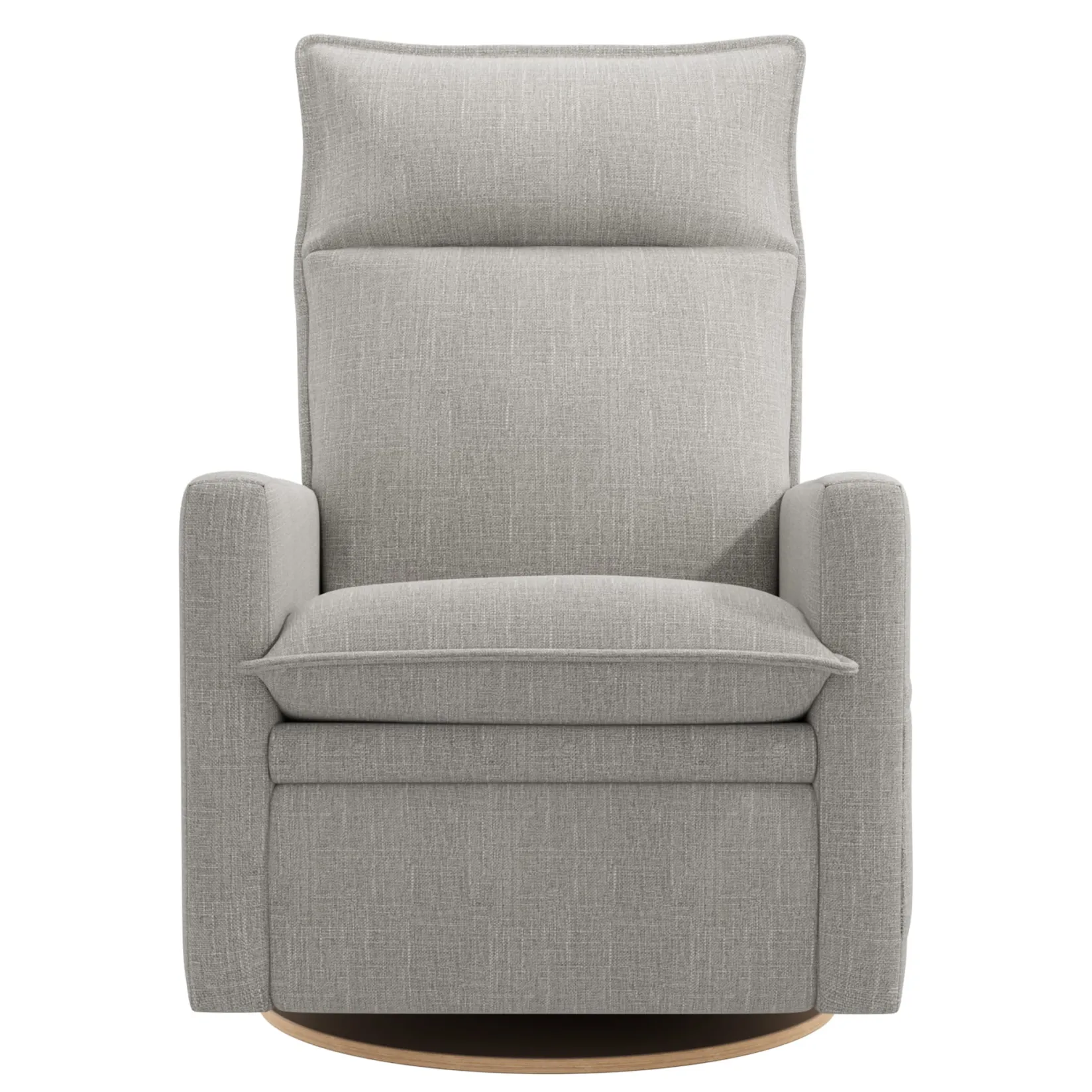 The new Arya power reclining chair brings an elegant, relaxed, and comfortable style to baby’s rooms. Its plush cushions allow you to sink into the chair and find the ideal position for ultimate relaxation.The power version offers smooth motorized reclining, with a control panel built into the armrest featuring buttons to control the recline, as well as USB and USB-C ports to keep electronic devices within reach.The recliner swivels with a smooth rocking motion, so you won’t disturb your little one’s sleep while settling in comfortably.