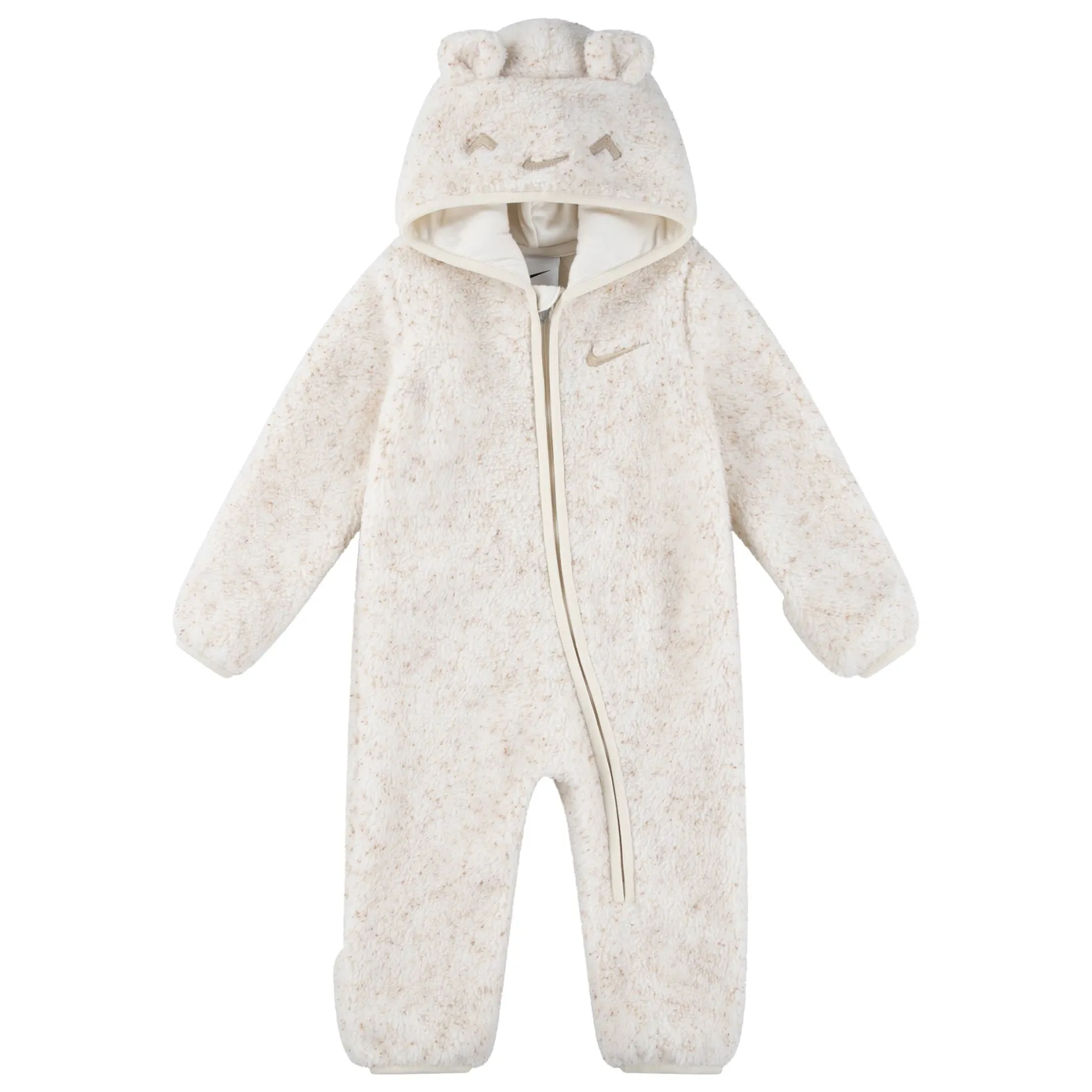Outfit the smallest ones in cozy comfort with this Nike coverall, which is made of plush high-pile fleece that feels soft and gentle on baby’s skin. It has a full-zip closure that makes changing, dressing or, layering over a bodysuit easy, with foldover hand and foot warmers helping to keep tiny fingers and toes toasty. Top off this coverall with the adorable hood and you have a babyhood essential with character your little critter will be comfy and warm in.