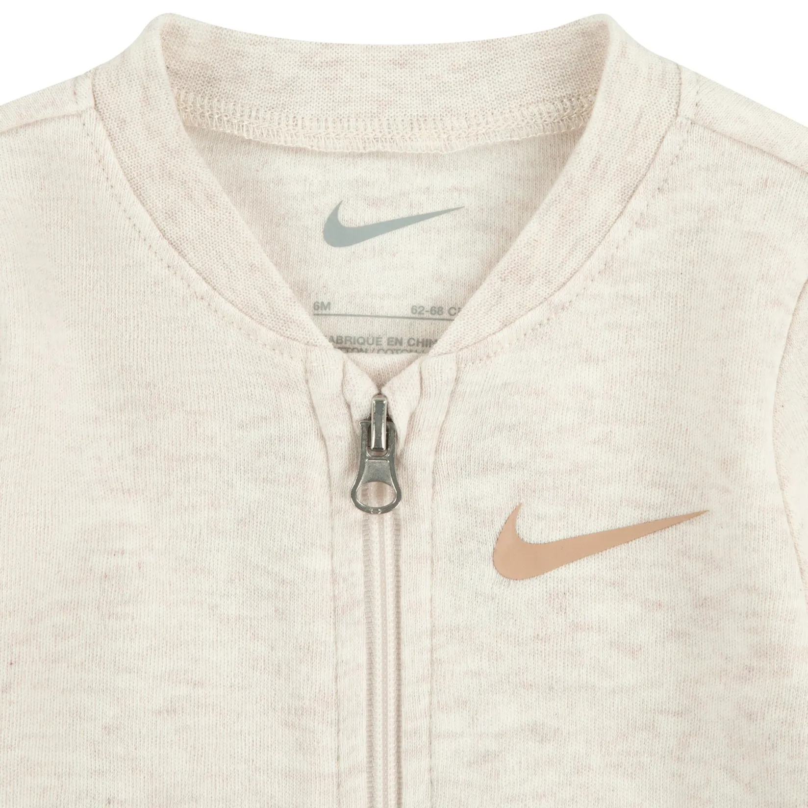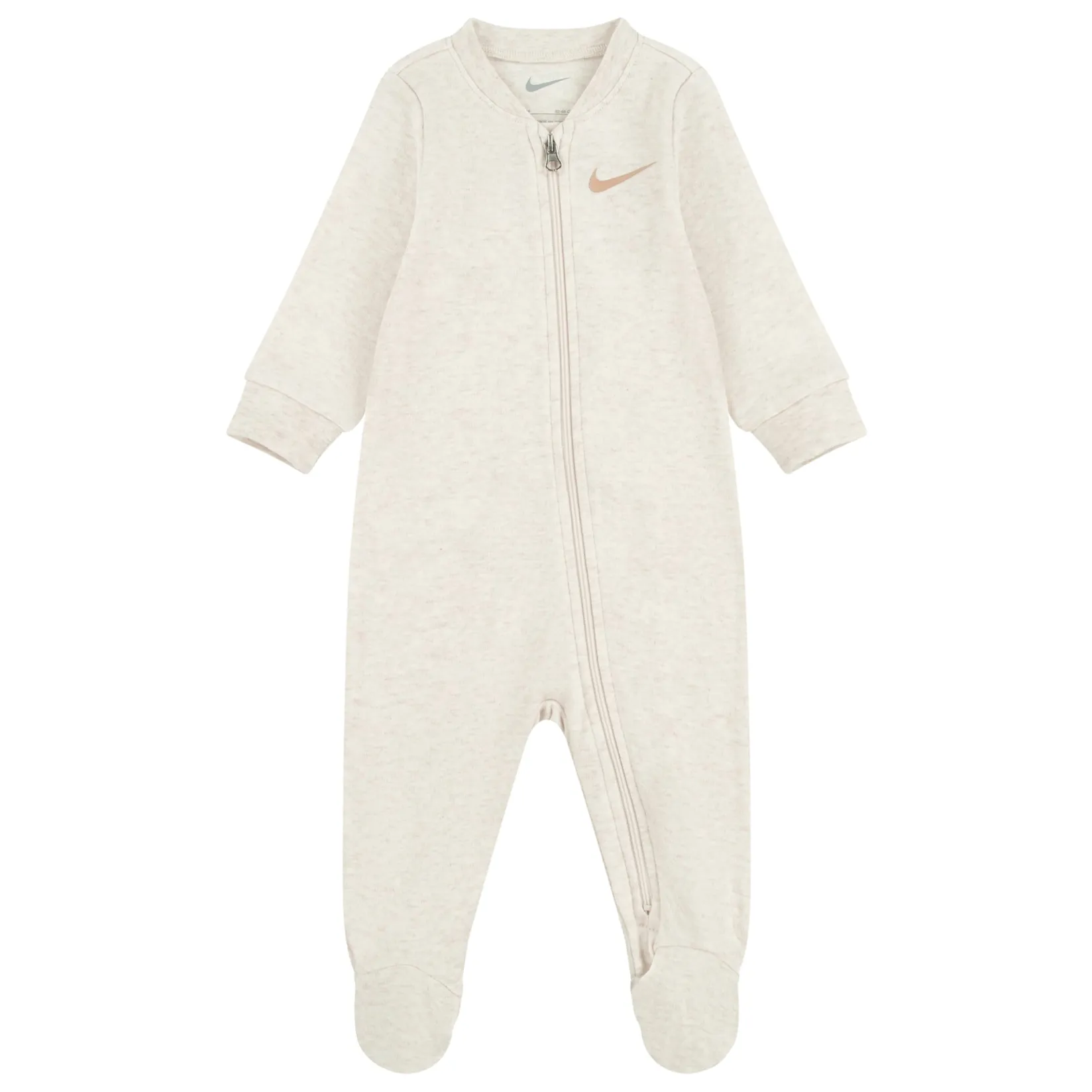 Easily dress future athletes in this Nike coverall, which is made of soft cotton/poly knit fabric that feels gentle and smooth on baby’s precious skin. The 2-way zip closure makes changing, dressing, or layering over a bodysuit easy, while the foldover mittens on the sleeves and the footed bottom help keep tiny fingers and toes toasty.