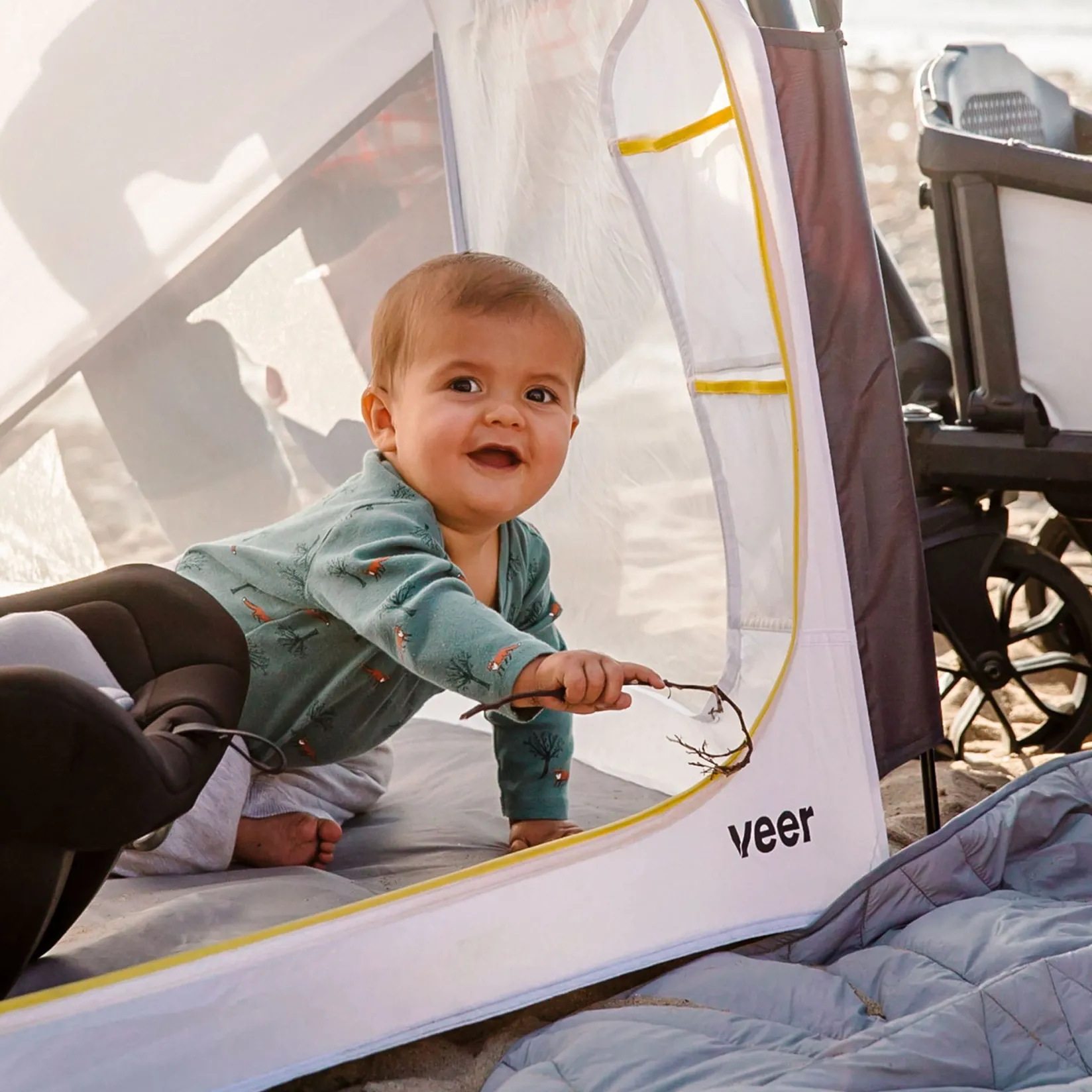 Meet the Veer Basecamp. When you venture in to the wild, Basecamp is the ultimate safe, shady, and insect-free pop-up play yard for little ones. Portable, light-weight play yard camp for any expedition