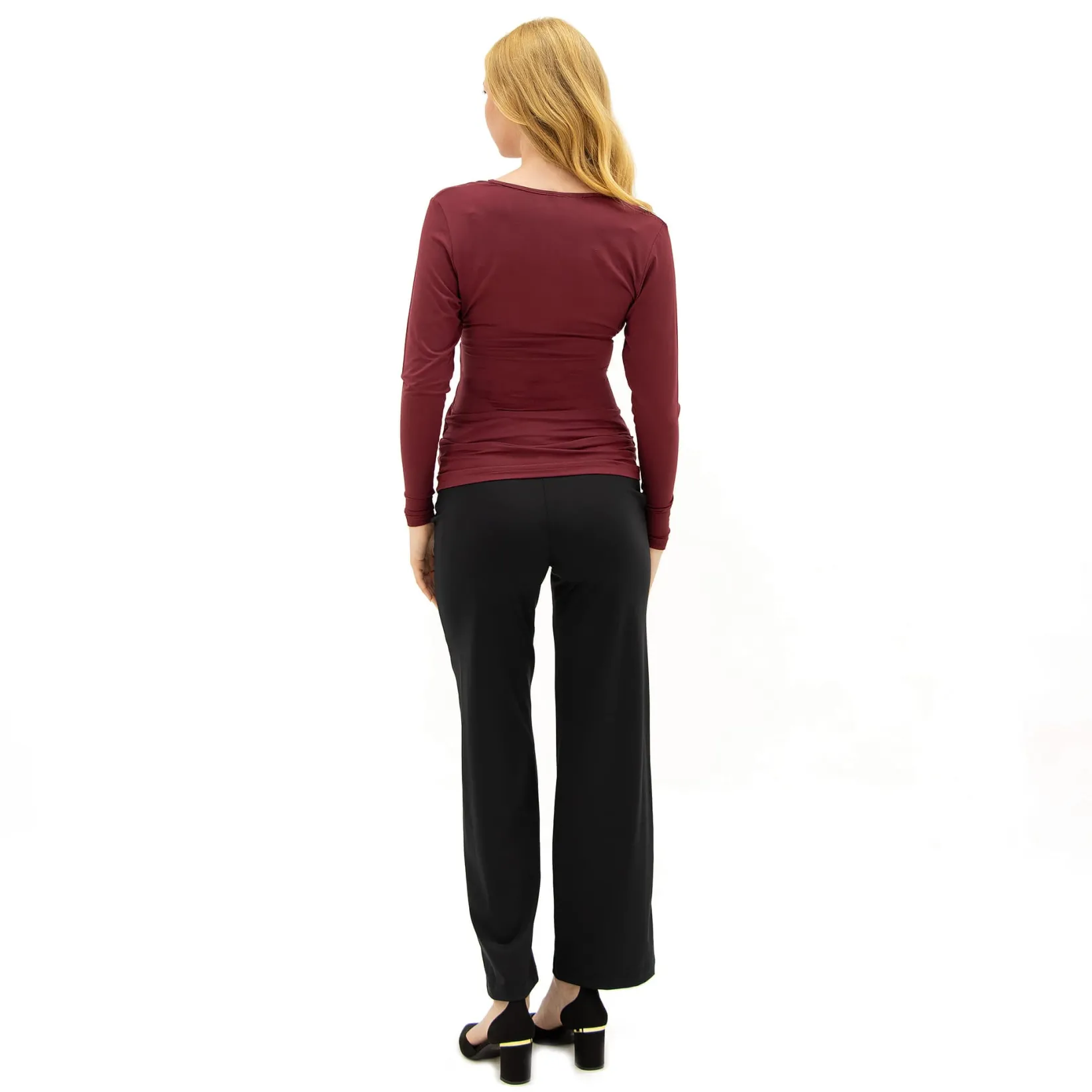 These classic maternity pants can be worn for work or for comfort.