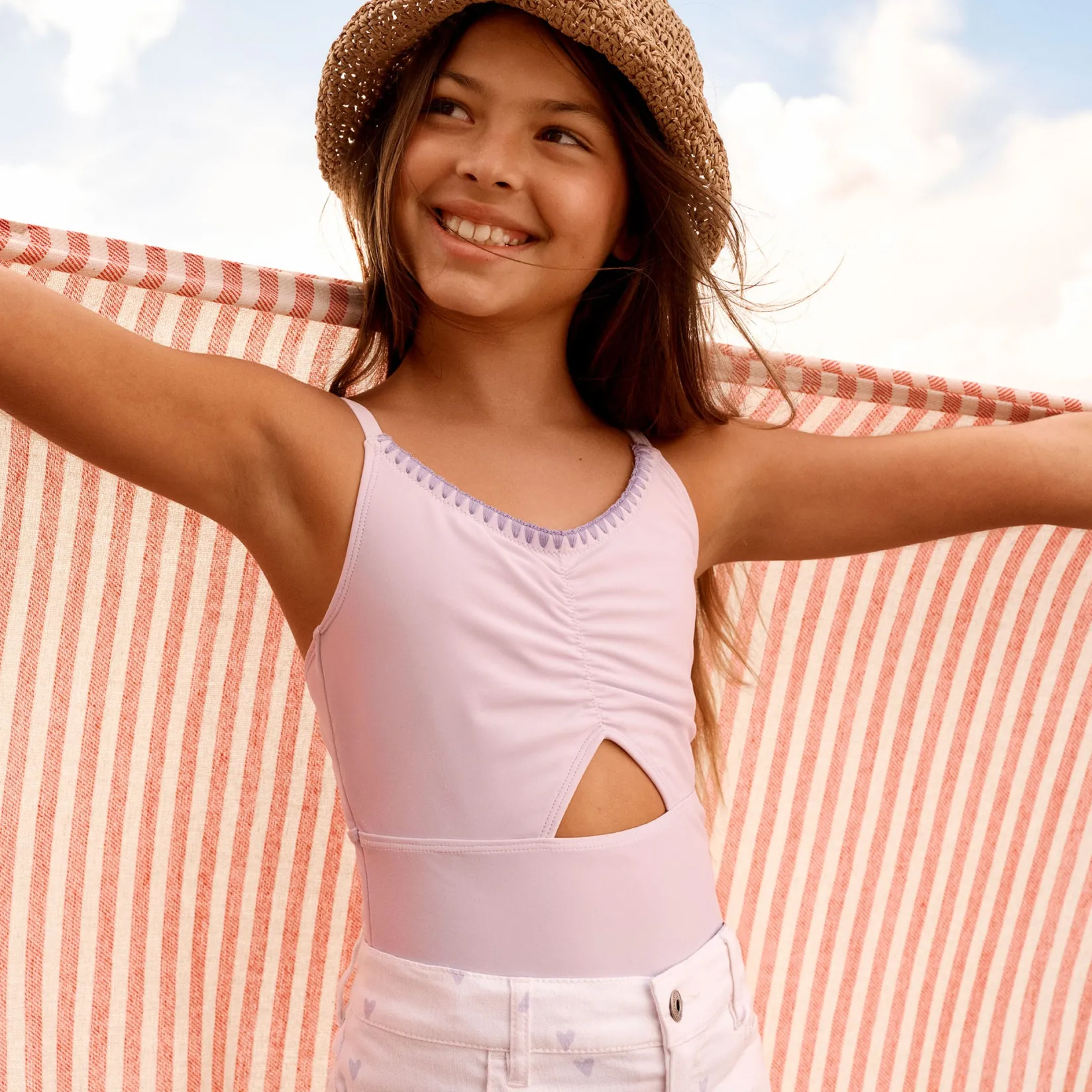 This swimsuit from abercrombie kids is vintage inspired style made of smooth nylon fabric with added stretch so you can move with ease. It features ruching and a small cutout on the bodice front, the straps are adjustable, and the suit is fully lined full coverage.
