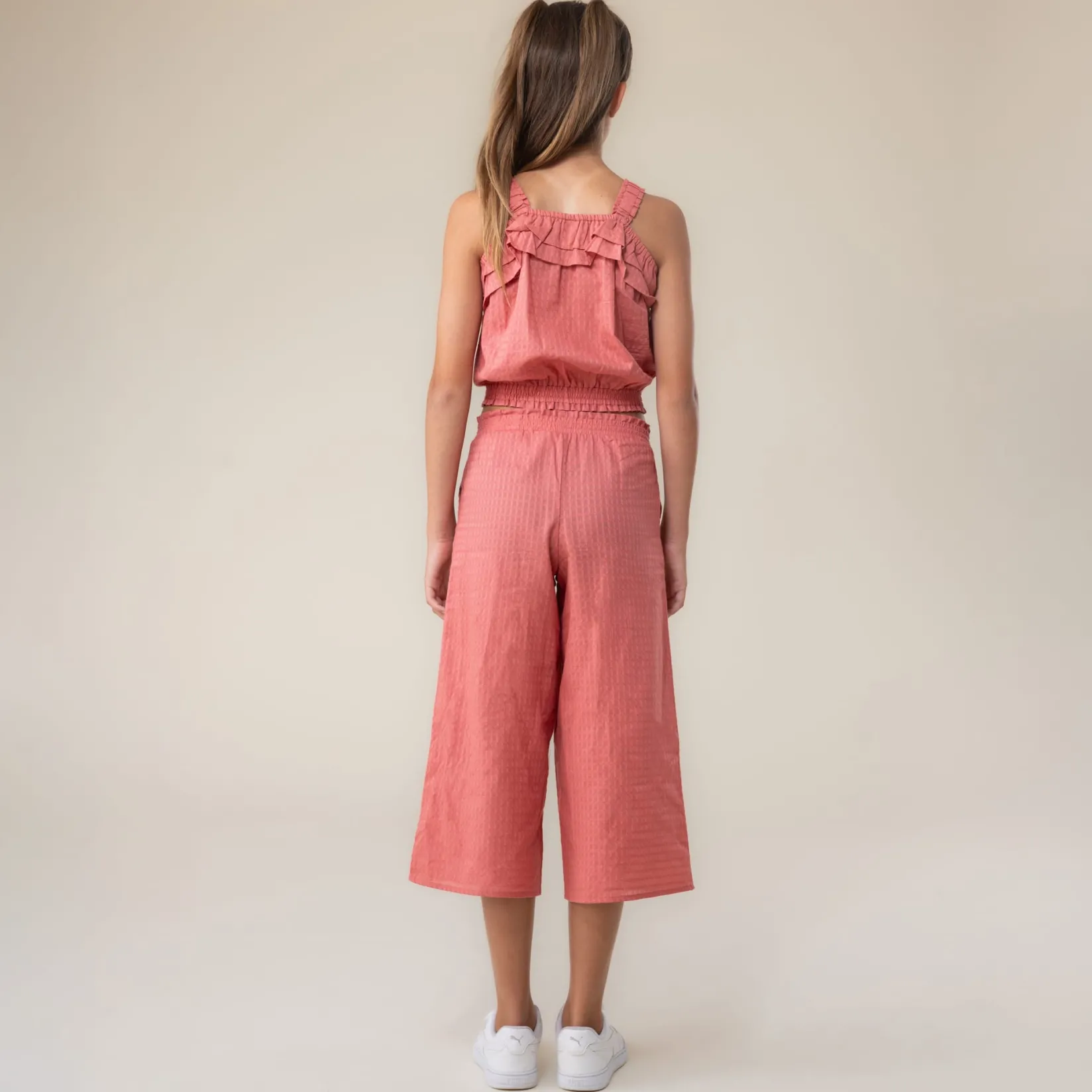 -Solid textured cotton pants