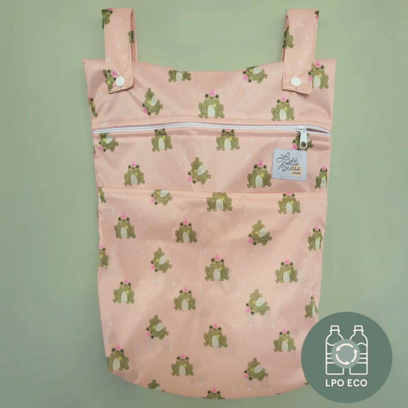 This bag has two openings that allow you to store 10 diapers. It’s very useful for outings: you can store your wet swimsuits, take your diapers to daycare, and dispose of your soiled diapers. A must-have to add to your cloth diaper order!