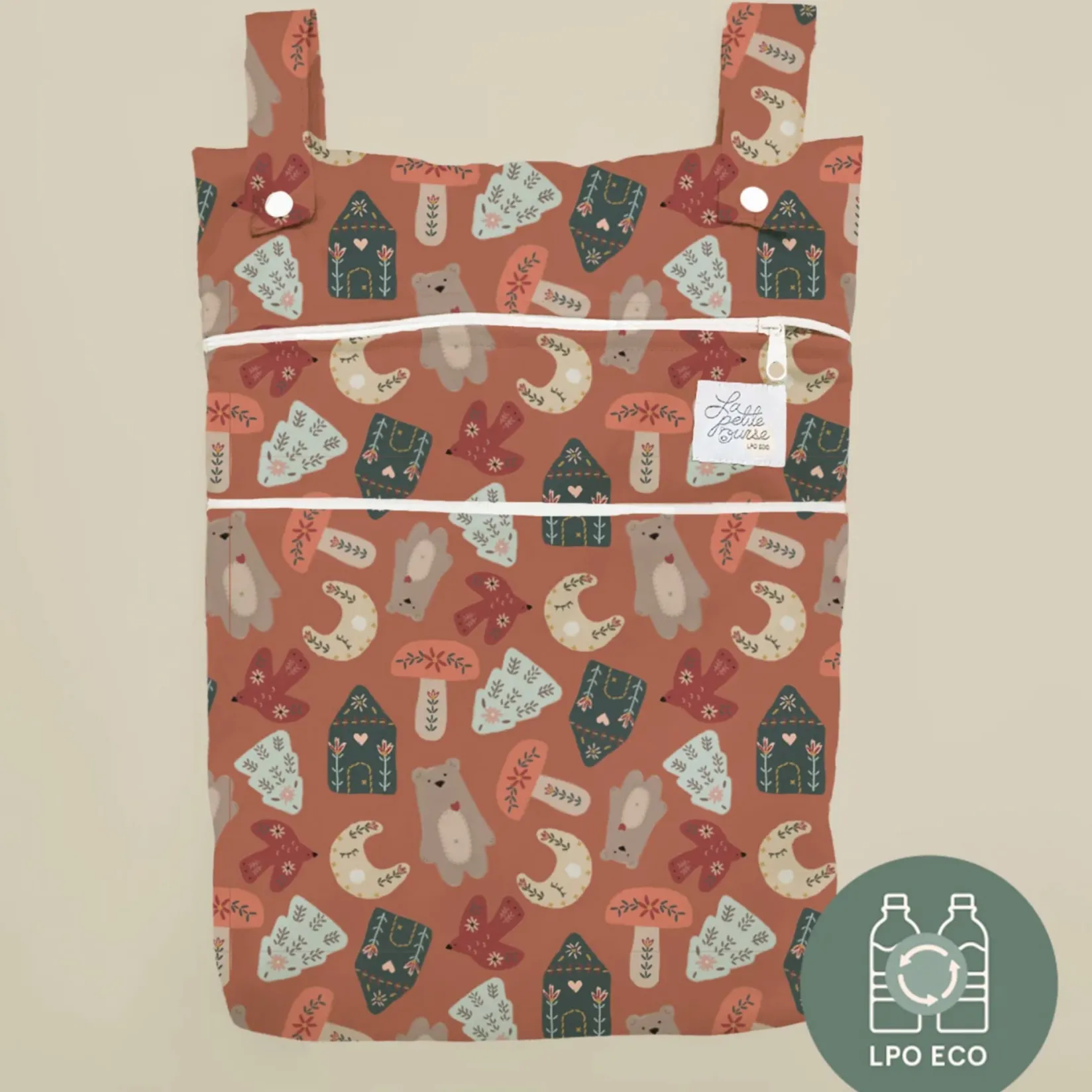 This bag has two openings that allow you to store 10 diapers. It’s very useful for outings: you can store your wet swimsuits, take your diapers to daycare, and dispose of your soiled diapers. A must-have to add to your cloth diaper order!