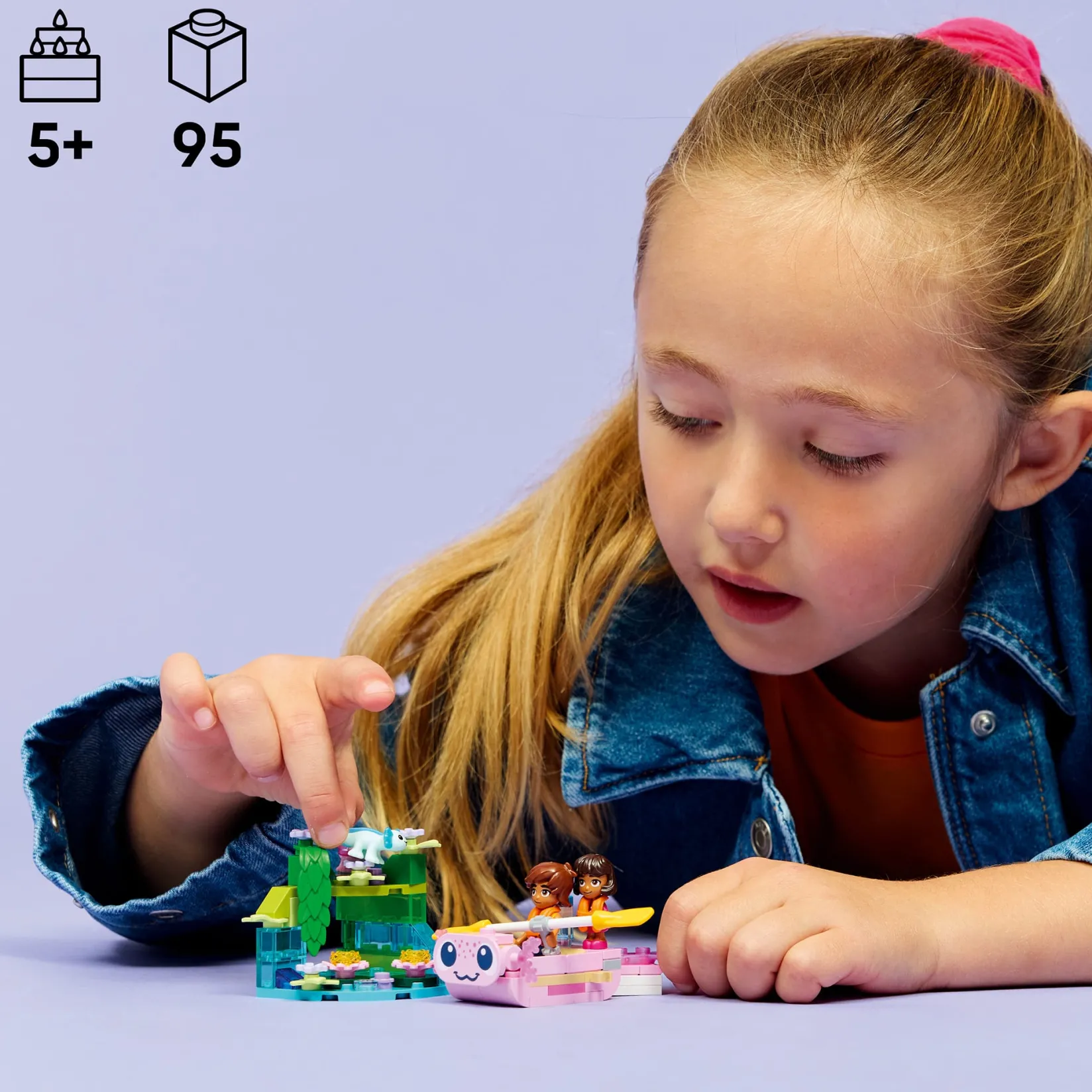 Encouragez les filles et les garçons de 5 ans et plus à raconter des histoires amusantes avec le jouet pour enfants LEGO® Friends Le bateau d’aventure axolotl (42681). L’ensemble comprend 1 minipoupée, 1 micropoupée, 2 axolotls miniatures et des accessoires pour encourager le jeu créatif.