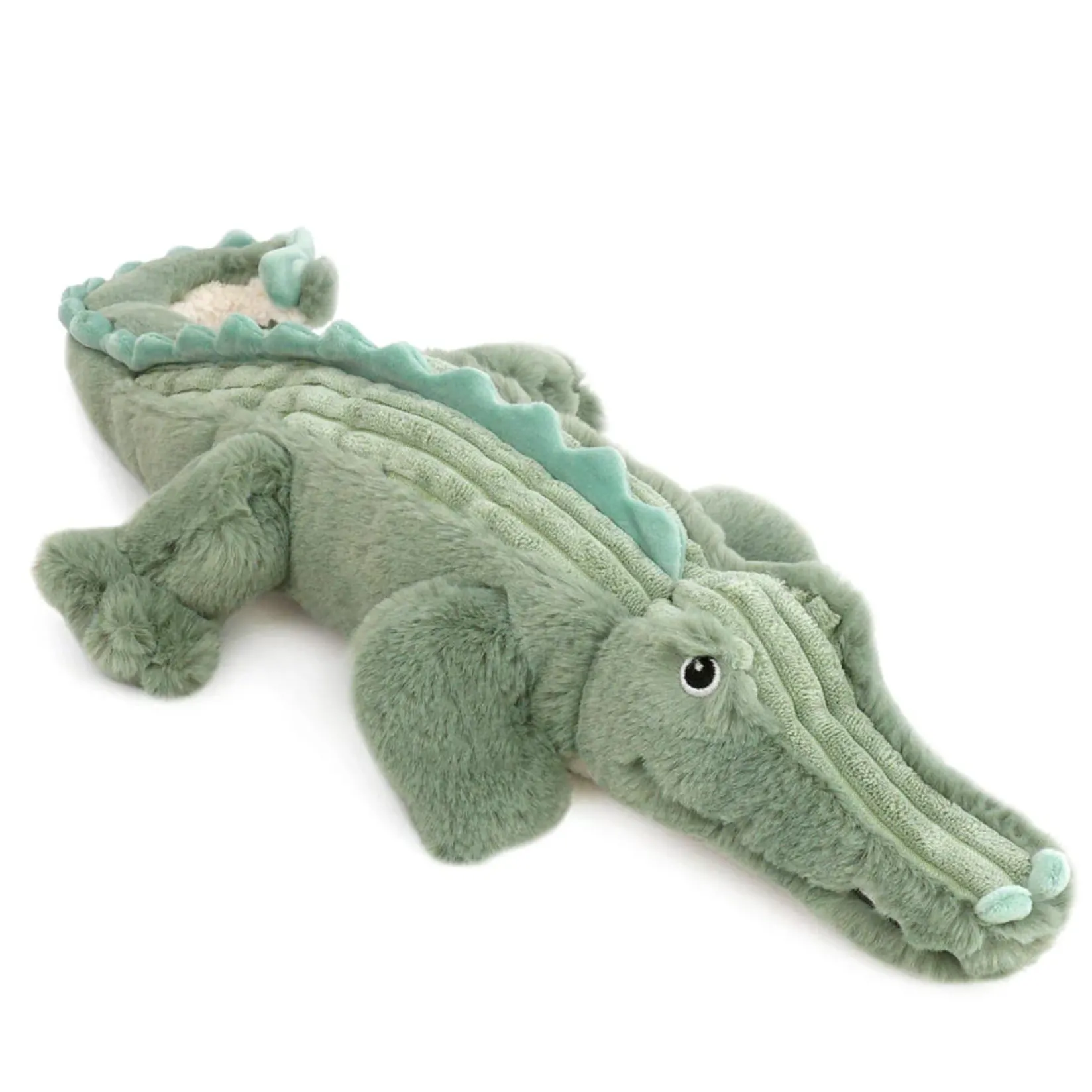 Say hello to Jagger Alligator, the snuggliest gator around! With his soft, sage-green skin and larger-than-life attitude, he’s the perfect cuddle buddy for any little reptile lover. Just like the real thing (but without the bite!), he features realistic markings and ridges that run from his head to the tip of his tail. Every wrinkle and ridge adds to the allure and interest of this reptilian friend, making him all the more charming. Whether you live near a swamp or not, you can be swamp royalty anytime with this lovable gator by your side.
