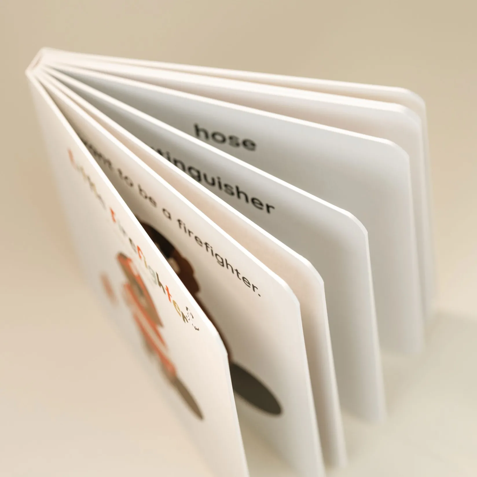 A simple board book that introduces toddlers to the elements of being a firefighter through clear text and warm illustrations.