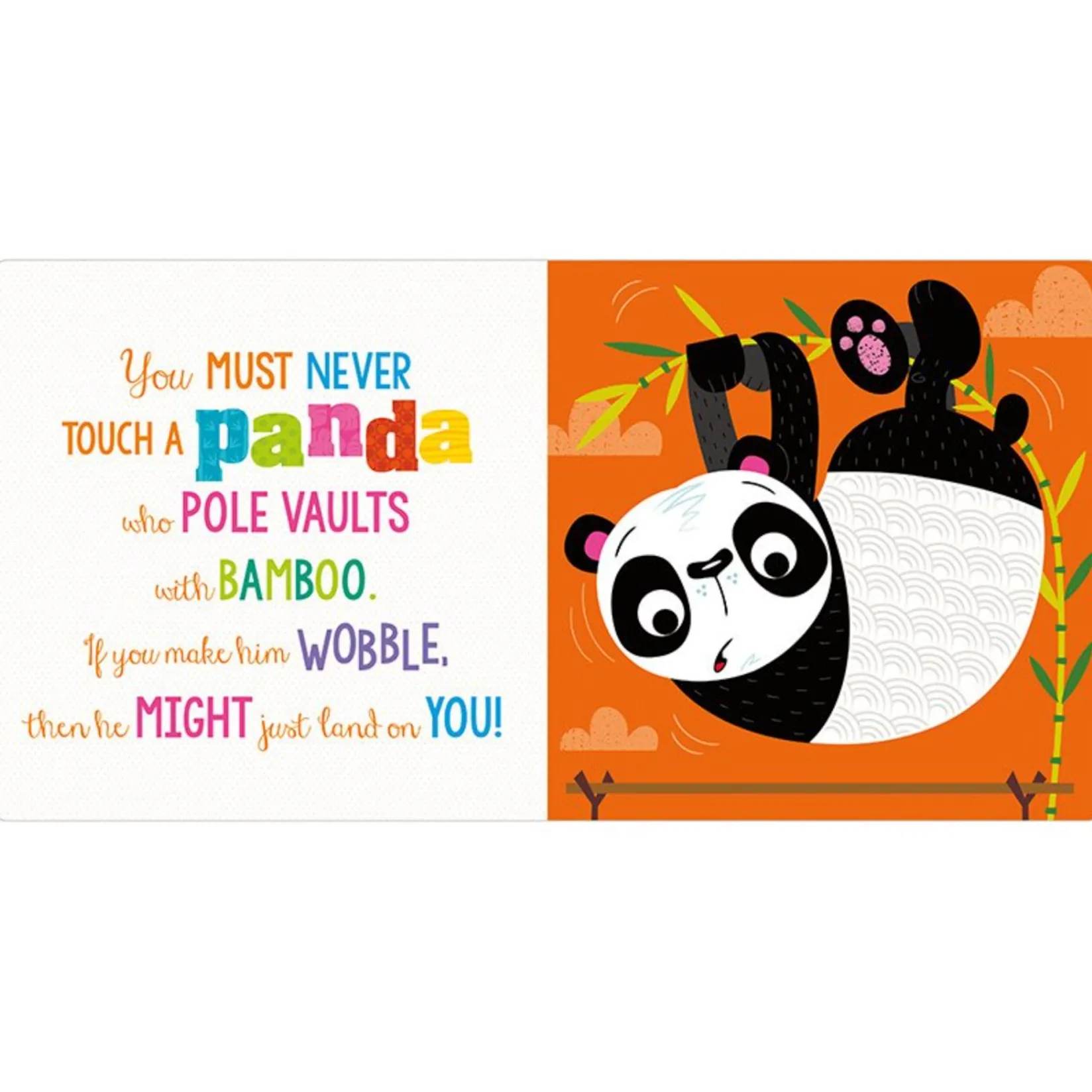 Never touch a panda . . . unless it’s in this book! This new addition to the Never Touch a…. series features four sporty animals, and is accompanied by a silly rhyme that is sure to make little ones laugh! Children will love touching the bumpy silicone touches on every page, and Stuart Lynch’s funny illustrations are sure to make this a hit with all families.