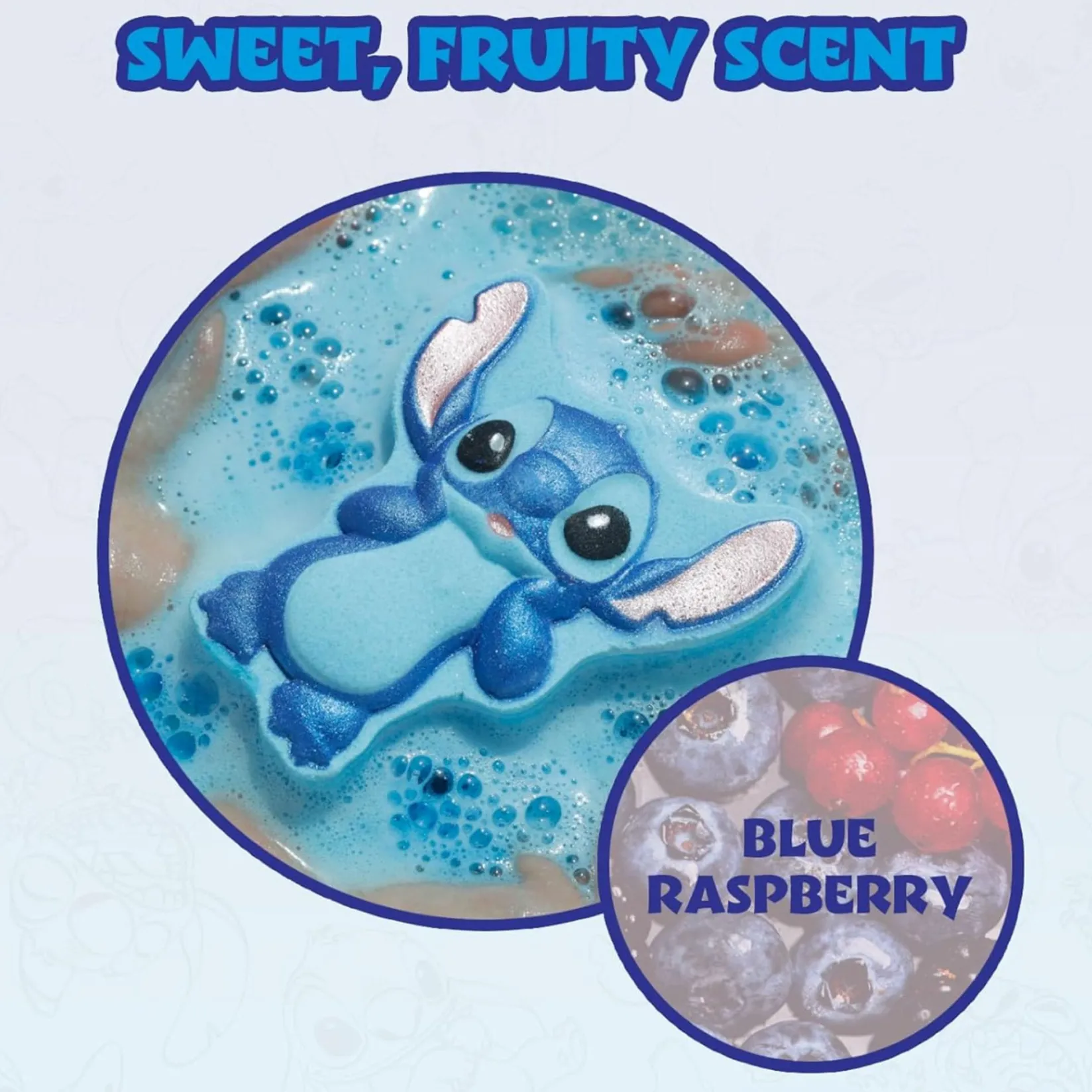 Delight in a trio of 100 grams blue raspberry-scented, beautifully painted molded bath bombs. Each bath bomb features a different pose of everyone’s favorite Experiment 626, each releasing a different color once it hits the water, bringing a touch of magic and mischief to bath time.
