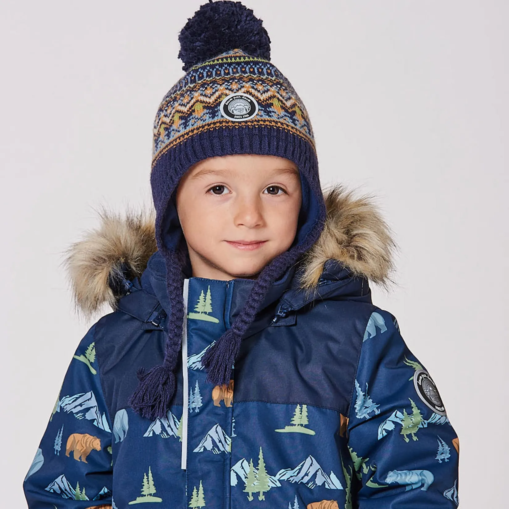With a rib knit hem and a multicolor pattern, this knit cap offers stylish protection on icy winter days. Lined with polar fleece for added warmth, this hat features a Peruvian silhouette with extended side panels to keep little ears out of the cold.