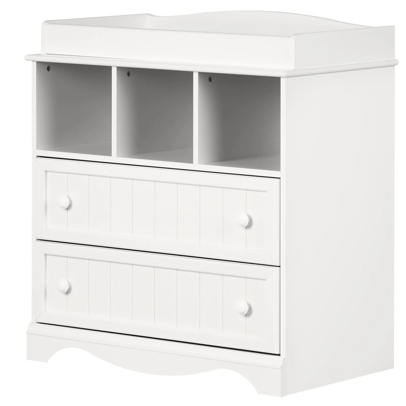Give your nursery a great new look with this essential Country chic-style piece. The attractive cutout at the bottom, drawer frames, decorative grooves, and wooden knob-style handles give this changing table a warm, elegant look. To make this diaper change “must have” truly attractive, put some nice-looking baskets in the open spaces. The unisex look can work with many different original, fun decor types!