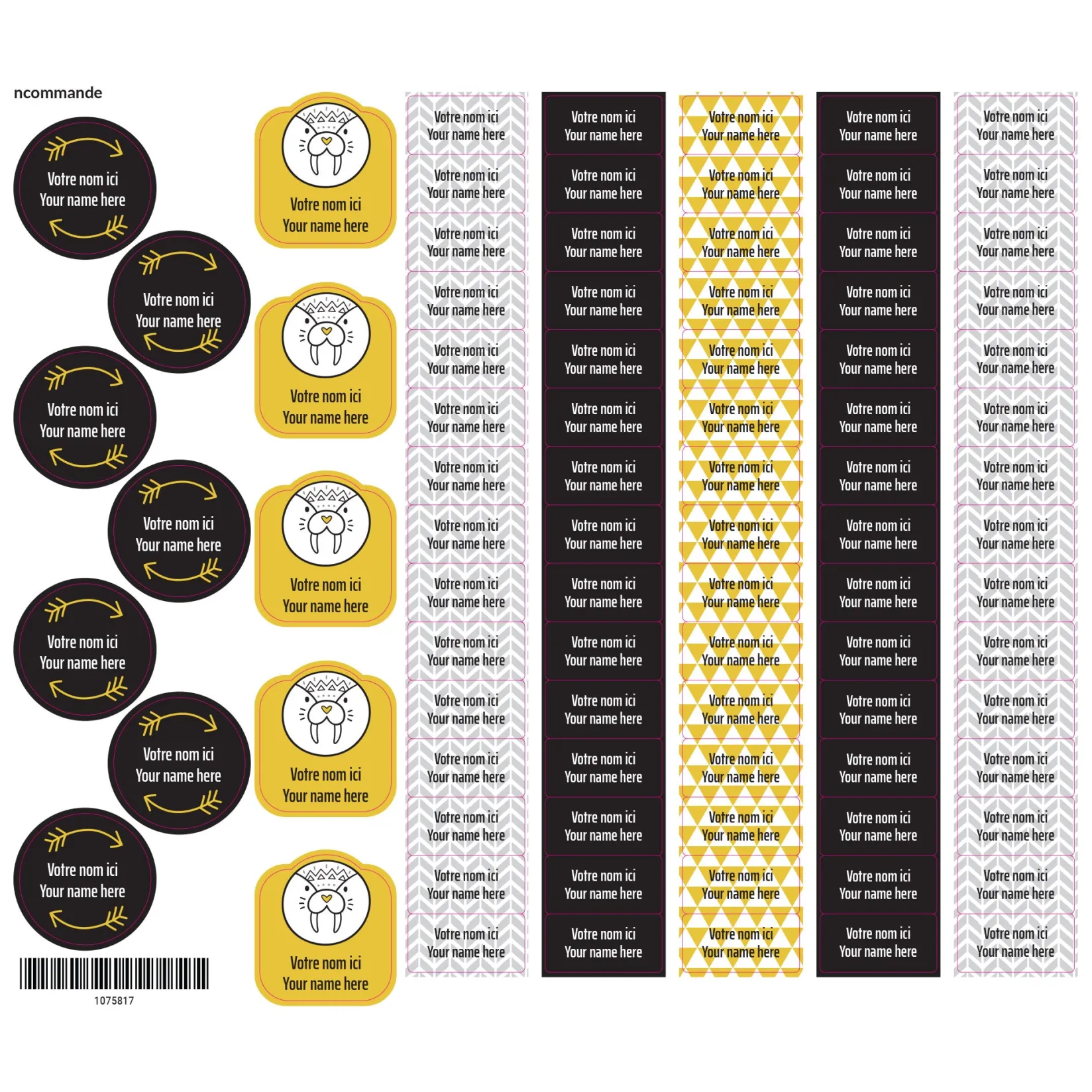 The set of personalized sticky labels ClĂ©ment becomes your best ally for the quick identification of your family’s personal items. In a few seconds, young and old will be able to recognize their school items, lunchbox items, sports equipment, shoes, clothes, etc. Waterproof and durable, the labels are not afraid of freezing, water, heat, or steam. They are resistant to the microwave, refrigerator, freezer, dishwasher, washing machine, and dryer.