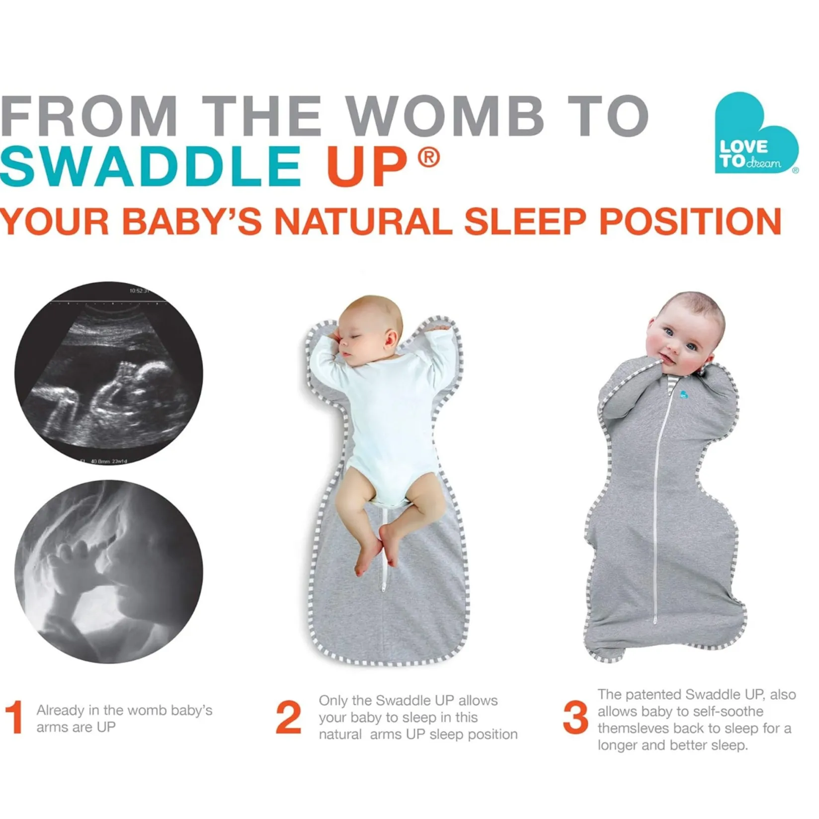 The innovative SWADDLE UP SILKY-LUX™ with patented wings allows babies to sleep in a more natural position, with their ARMS UP™, so they can self-soothe by sucking their hands and touching their face. Medical research has shown that when babies can self-soothe, they sleep longer. The SWADDLE UP™ is intended for use from day one™ and can help parents establish a solid foundation for sleep, right from birth.