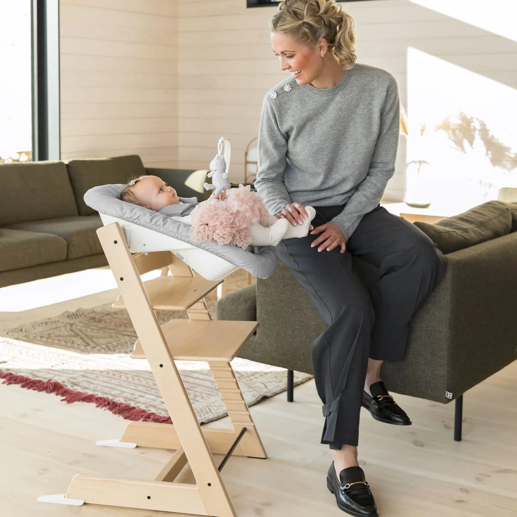 The Tripp Trapp® Newborn Set is designed to encourage bonding from the very beginning. Comfortable and ergonomic, it cradles your newborn, lifting them to table height. Now with 2 angle adjustable positions and excellent leg support, your little one is assured a cozy, nest-like environment they are sure to enjoy.
