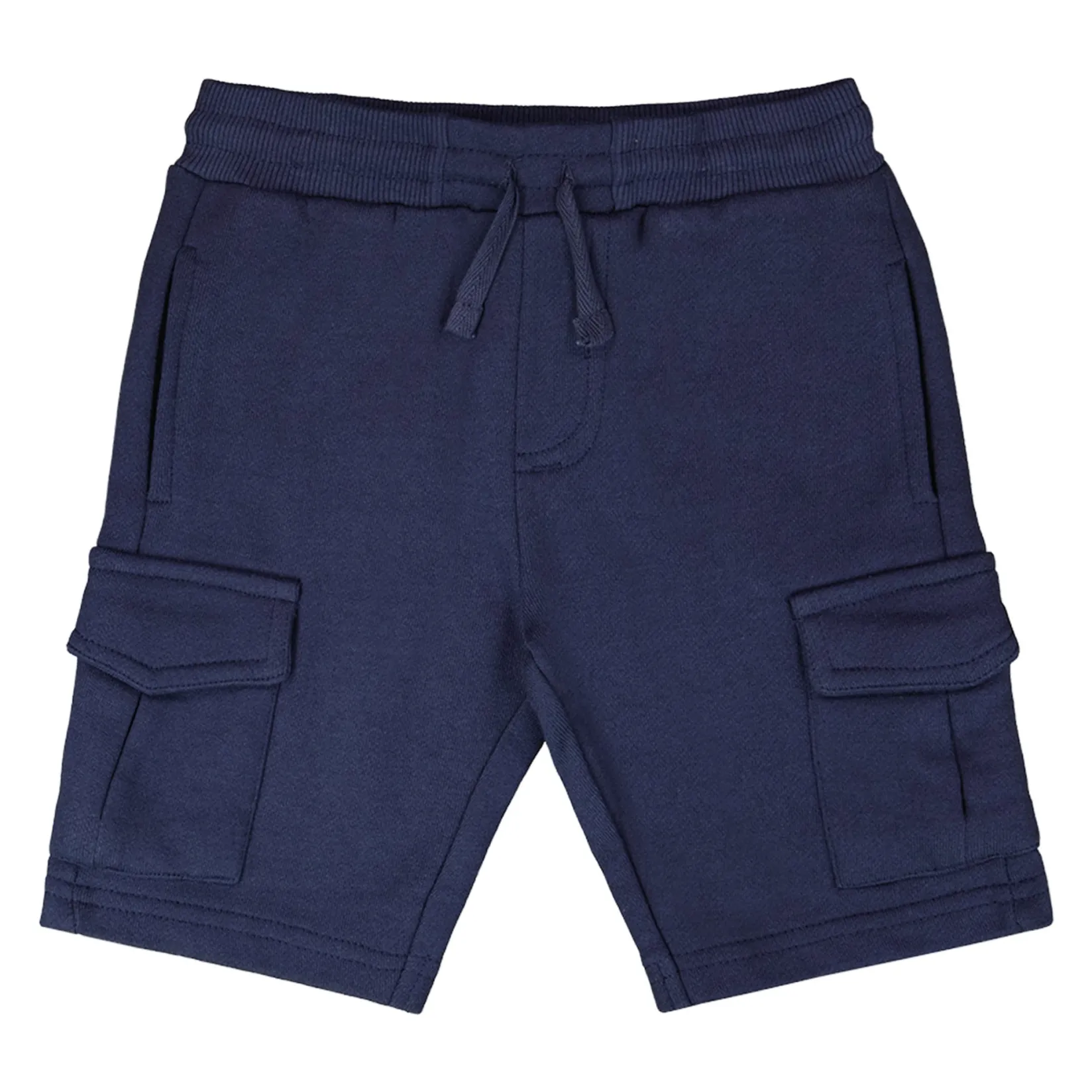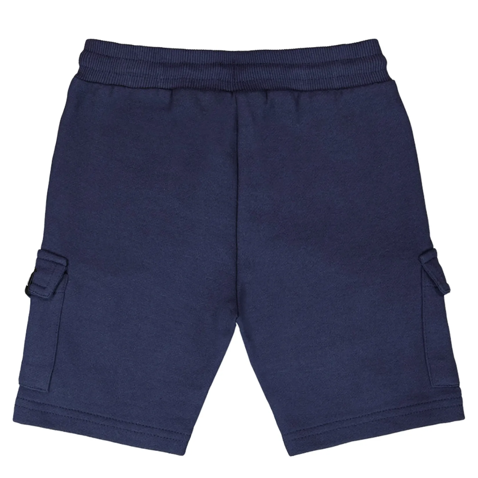 The French terry shorts in blue are a comfy yet practical summer essential for boys. These bottoms are designed with an elastic waistband for easy pull-on wear, slit side pockets, and functional cargo pockets for a casual utility look. Made from soft cotton-blend French terry, they are perfect for play and everyday adventures in the “Coastal Days” collection.