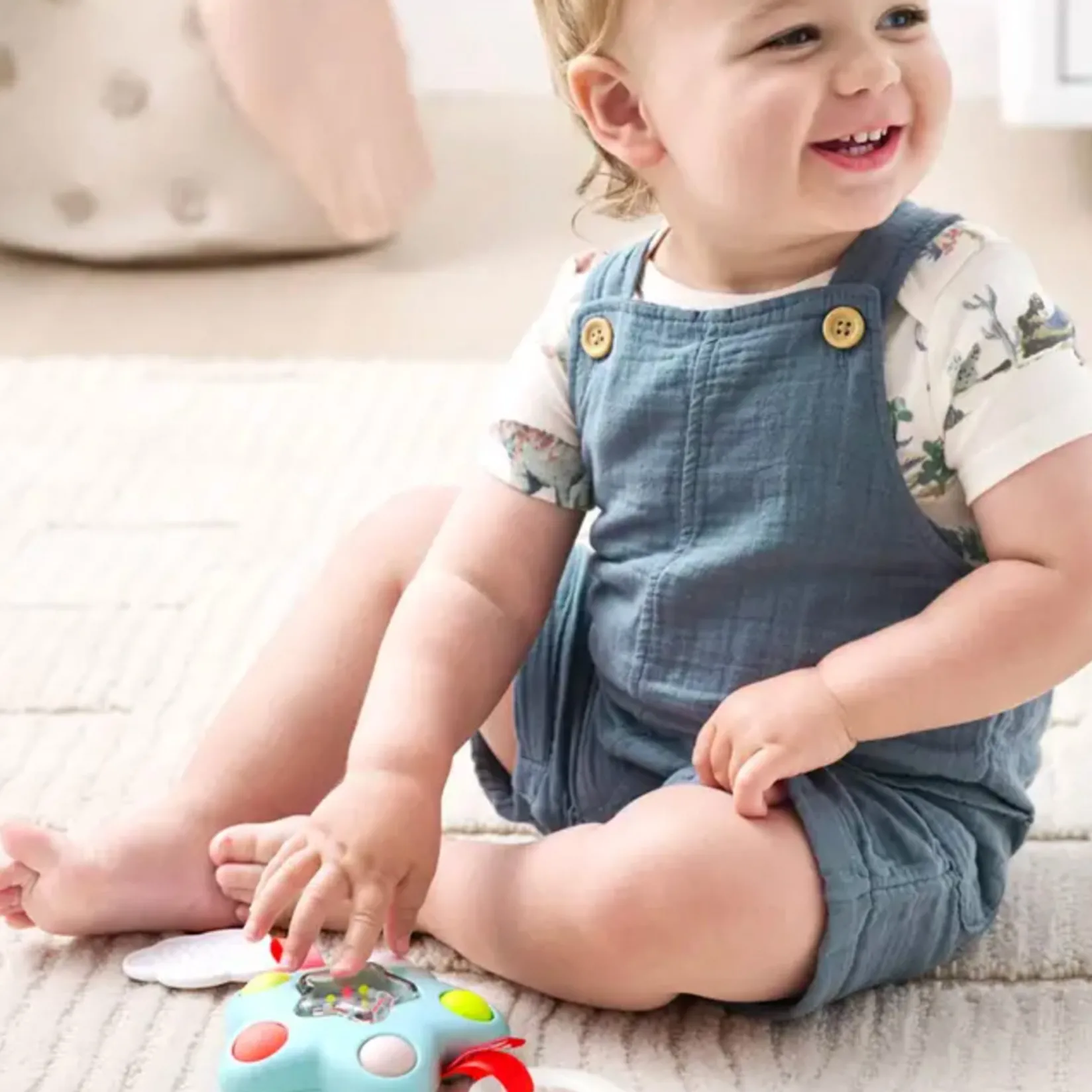 This star-shaped sensory toy keeps little hands busy at home and on the go. Designed for sensory play and exploration, it features five soft silicone poppers that are fun to press while helping build fine motor skills. It also included rattle beads, a textured cloud teether and colorful ribbons.
