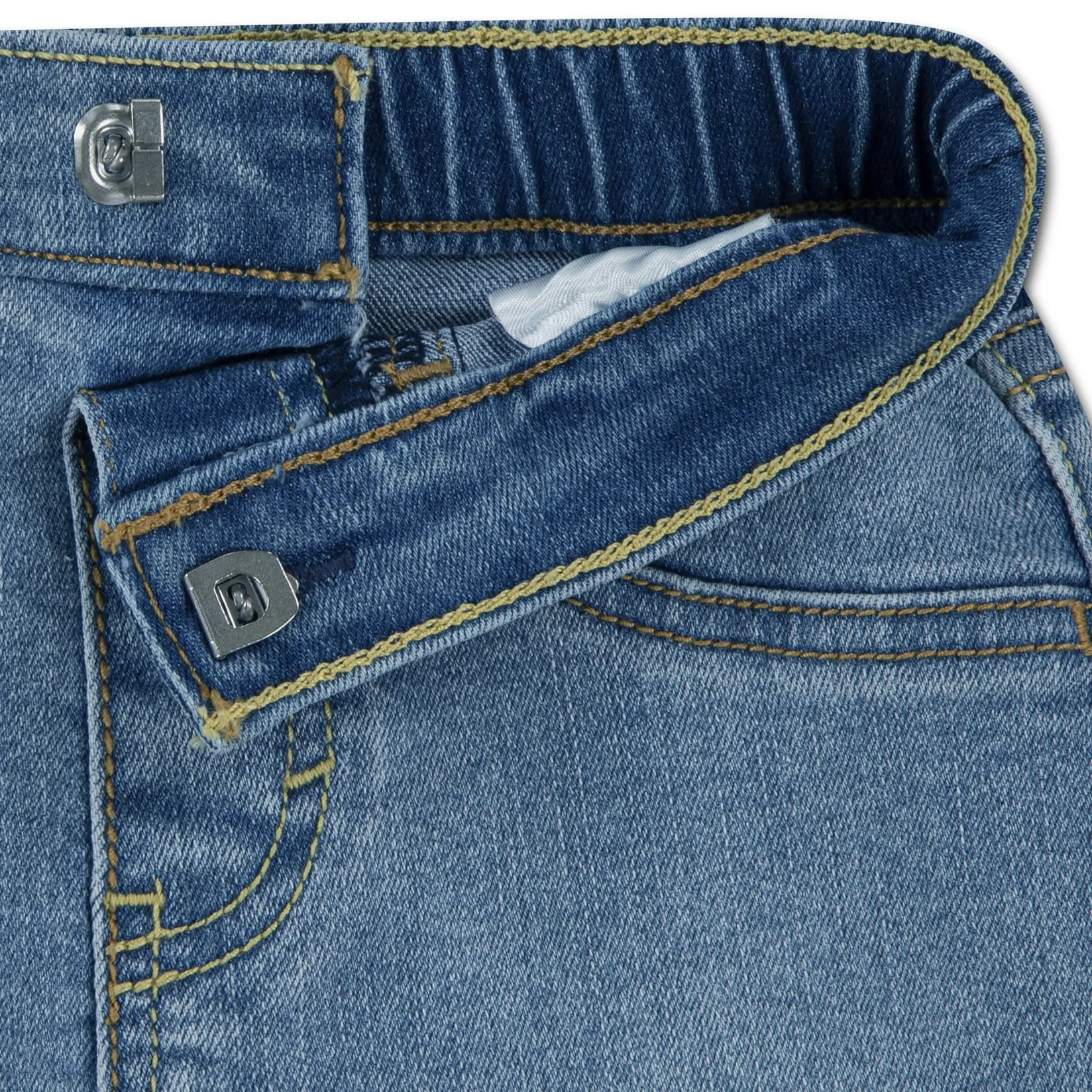 Shorts: stretchy denim, elastic back waistband, signature Levi’s® back pockets, hook and eye closure, zip fly;