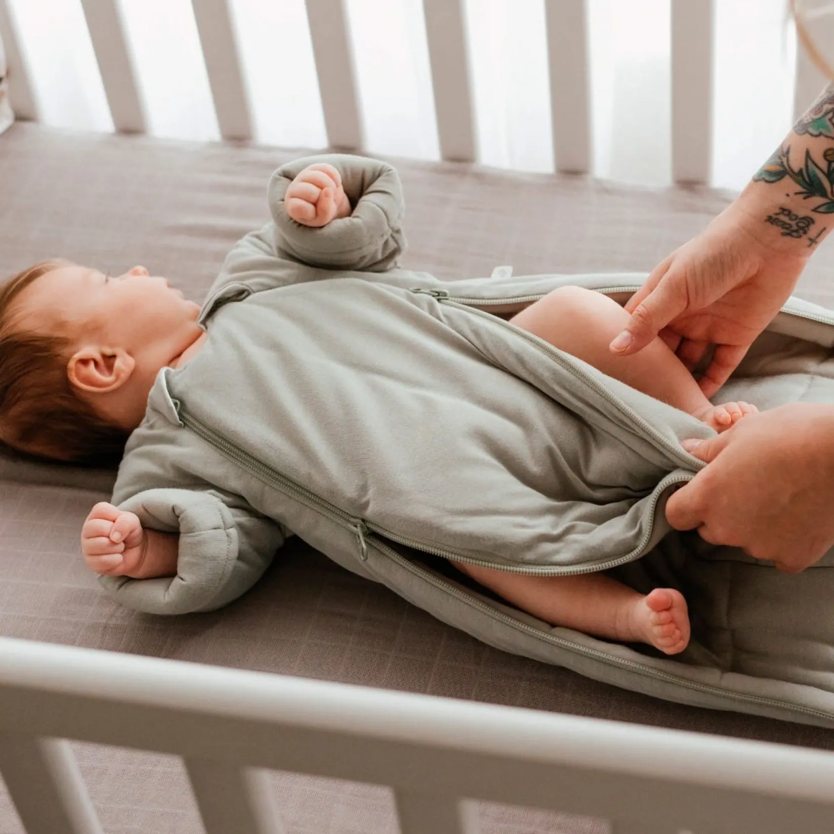 Generally, babies are ready to move away from swaddling when they begin to show a desire for greater mobility while still needing a safe and cozy sleep space… And that’s usually where the sleepsuit comes in!