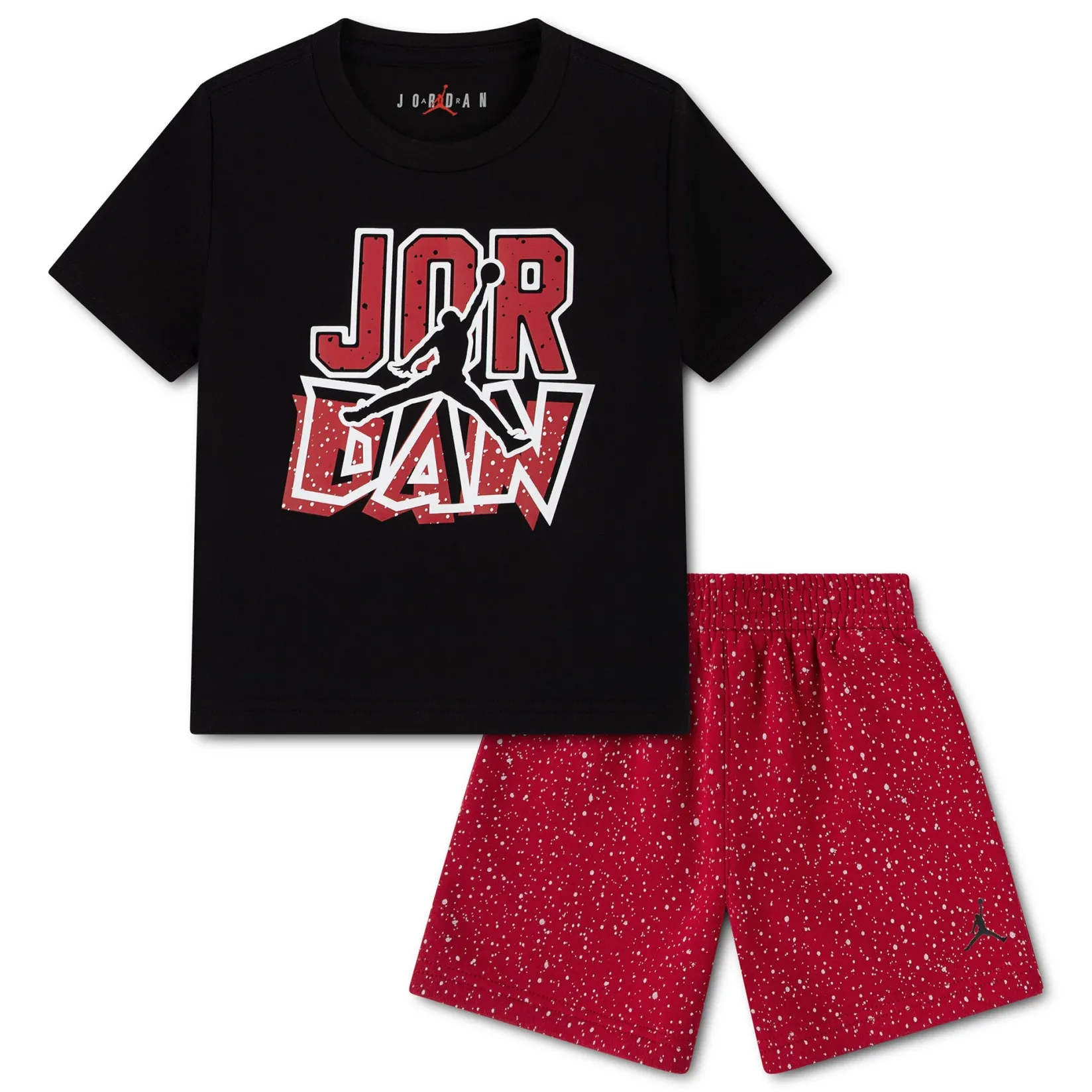 Habillez facilement les jeunes athlètes avec cet ensemble 2 pièces de Jordan. Le t-shirt à coupe standard présente un logo superposé et un col ras-du-cou sans étiquette pour un confort sans tracas, tandis que le pantalon en molleton assorti affiche un motif moucheté intégral et une taille élastique pour un ajustement confortable.