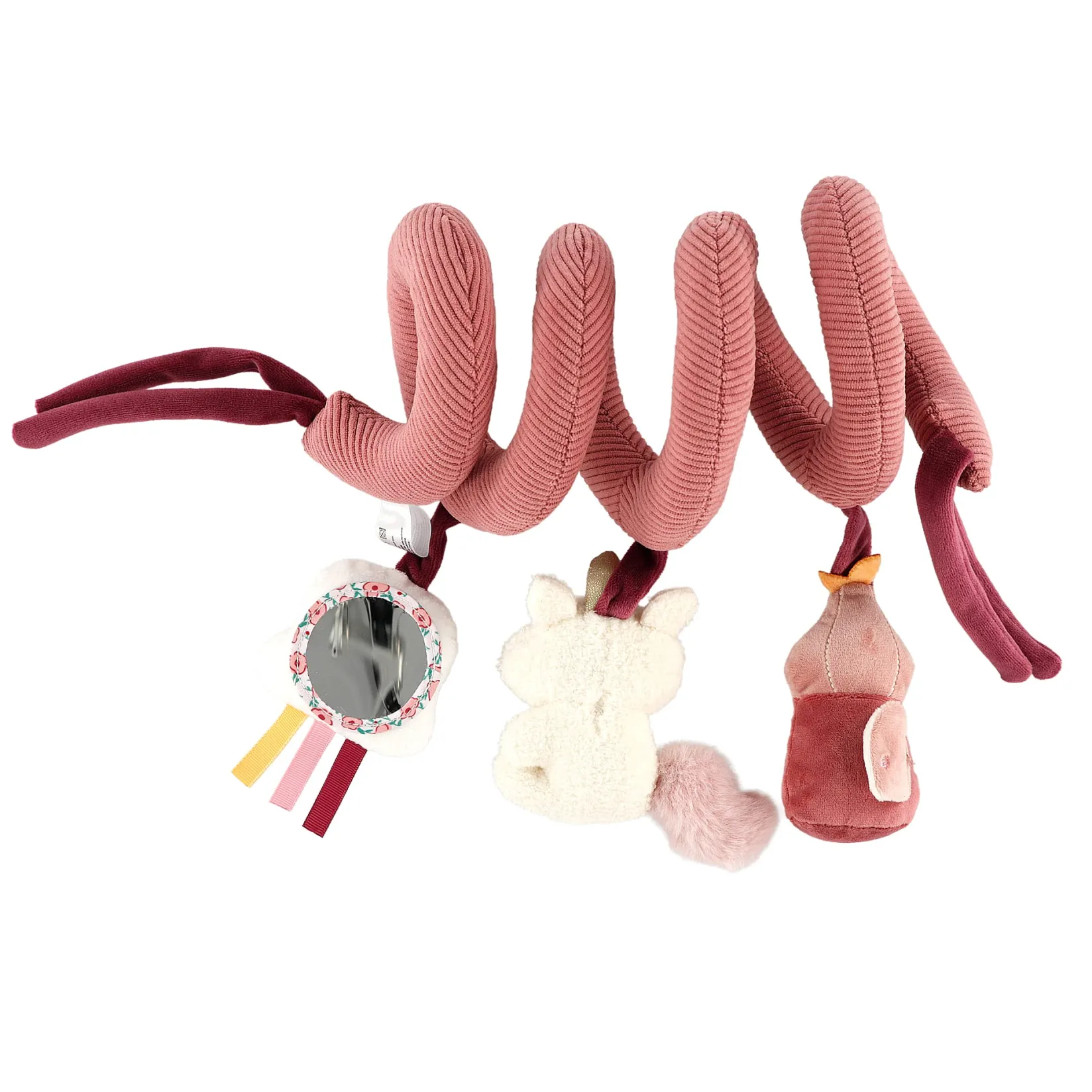 Spiral toy to wrap around the stroller, car seat or playpen