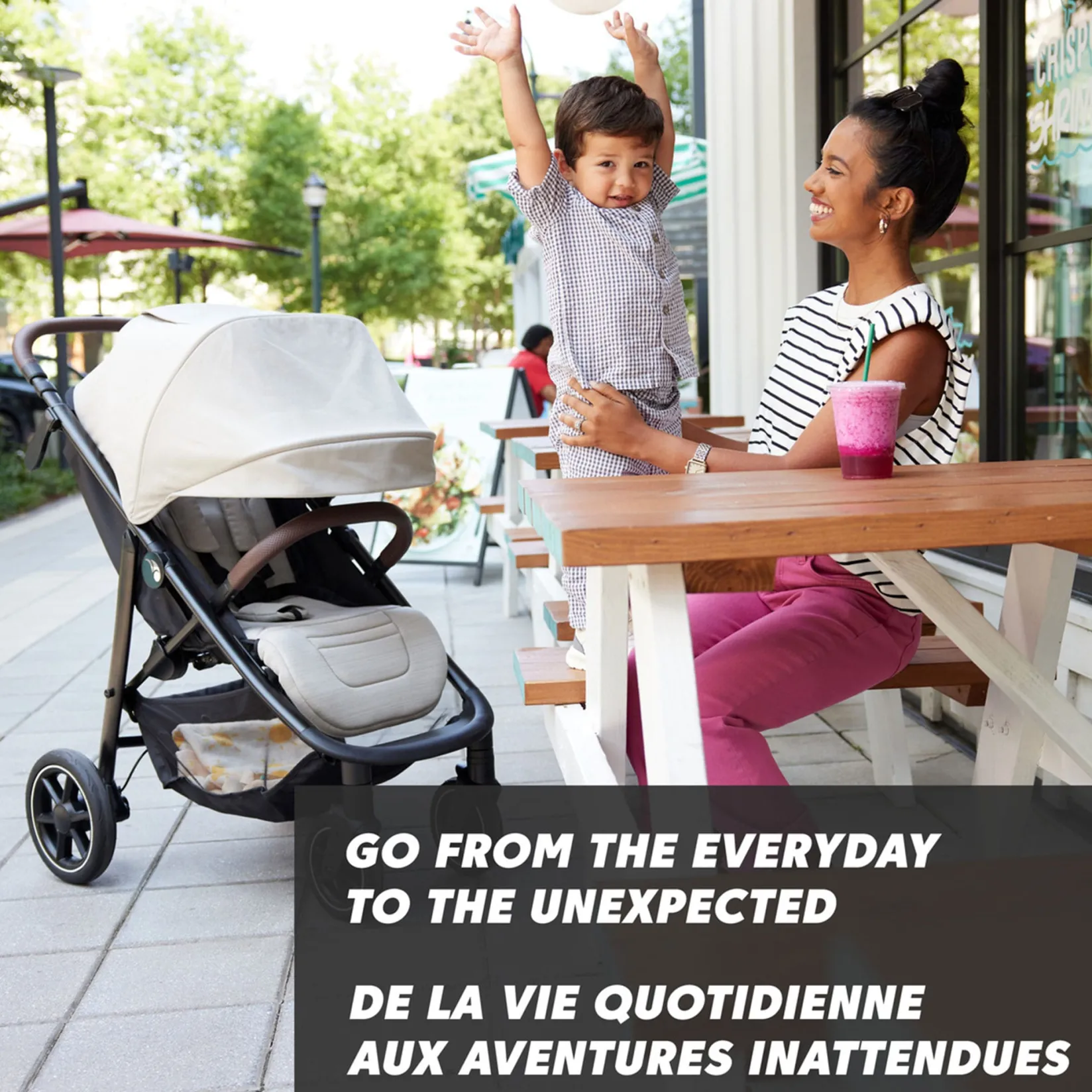The Baby Jogger® City Mini® Air Lightweight Stroller is the compact stroller you need for everyday strolls that can turn into big adventures. With all-terrain rubber tires and all-wheel suspension, this low-profile stroller can go off the beaten path. Baby stays comfortable with a padded seat and a canopy featuring a soft, breathable TENCEL blend that is sustainably sourced. You’ll love the premium leatherette used on the adjustable handlebar and belly bar. A compact, one-step fold and lightweight aluminum frame make for easy transportation and storage. The Harness Assist no-rethread stroller harness allows you to adjust the fit of the harness without rethreading, and a magnetic buckle makes getting in and out a breeze. Kids stay comfy with a reclining seat, adjustable calf support, and Flex Tech seat suspension that provides the smoothest ride. The included infant car seat adapters are compatible with all Baby Jogger and Graco infant car seats, so you can create your own travel system.