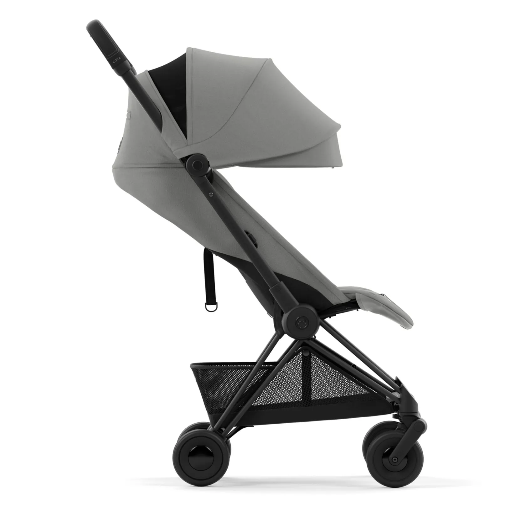 -INTEGRATED CARRY STRAP. Sling the folded COŸA over your shoulder with the padded carry strap – this luxury design detail makes carrying easy.SUN CANOPY WITH MESH INSERT. A 3-section extendable sun canopy protects your child with UPF50+ fabric. Unzip the canopy to reveal a mesh window for additional breathability and air circulation.