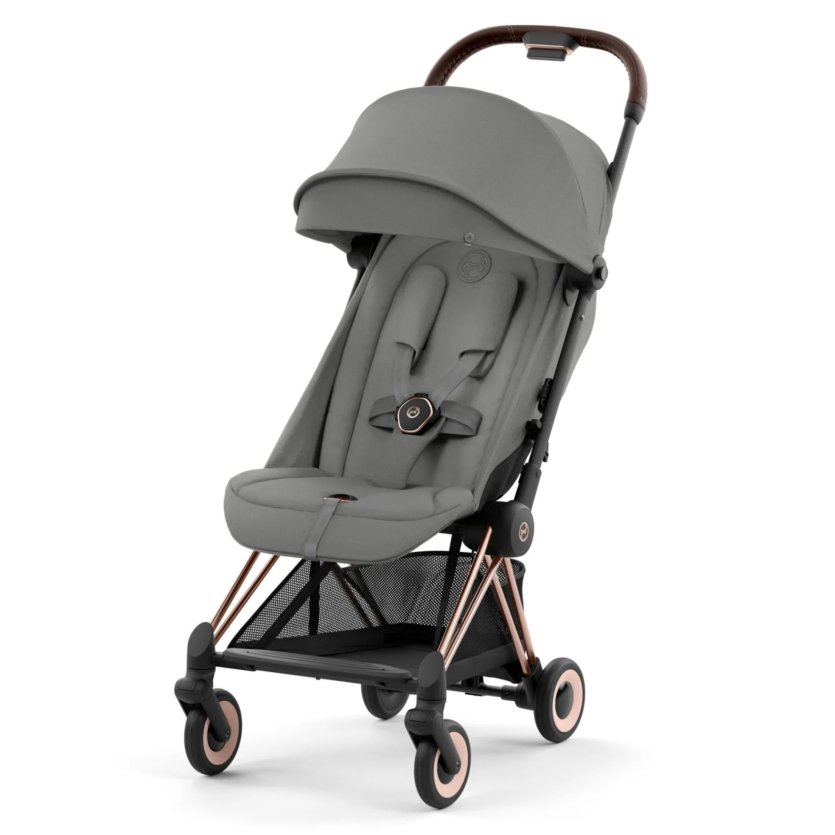 Strollers|Strollers & Trailers>Cybex Coya Stroller – Rose Gold Frame with Mirage Grey Seat