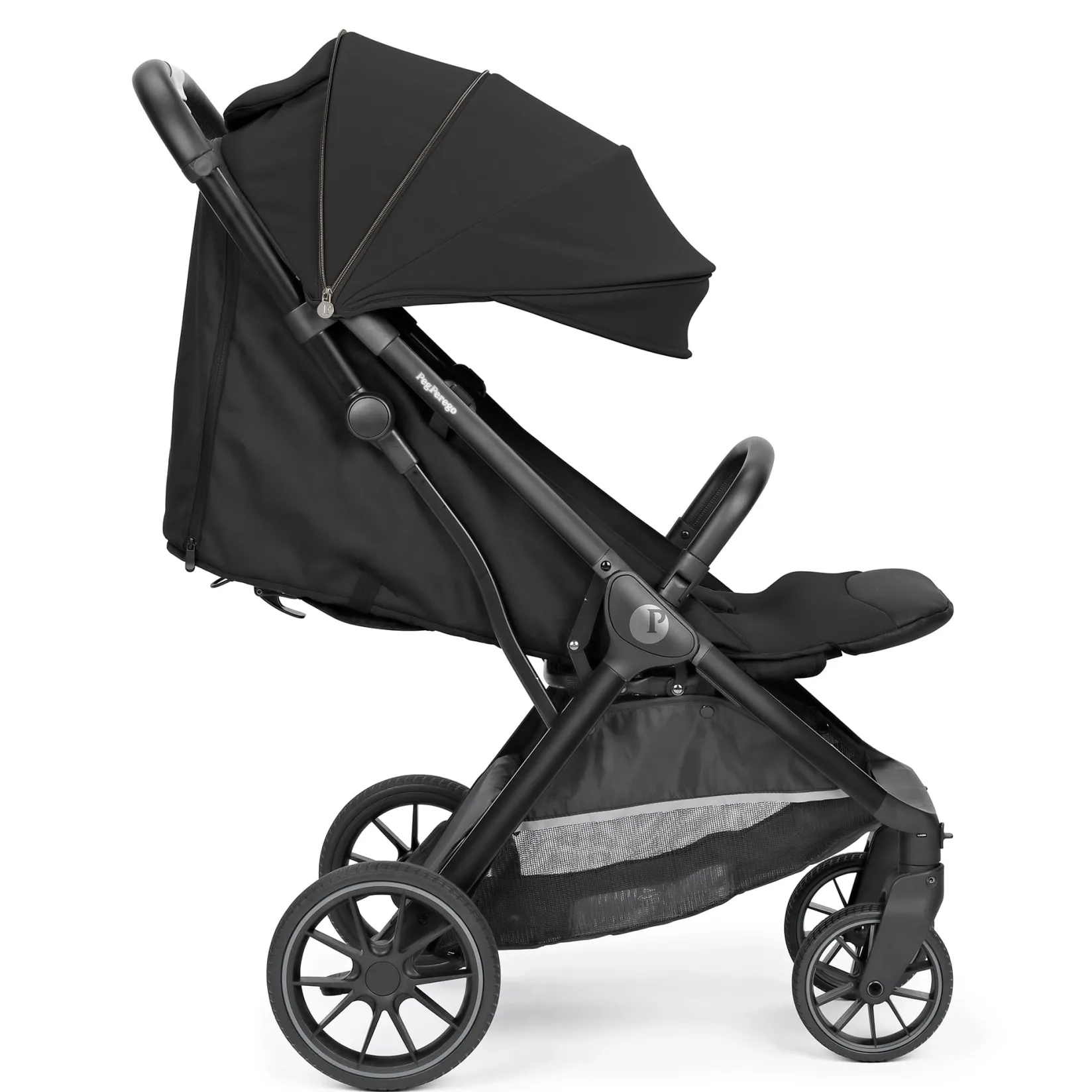 – UPF 50+ extendable canopy with ventilation: wide hood with mesh panel and breathable roll-away curtain