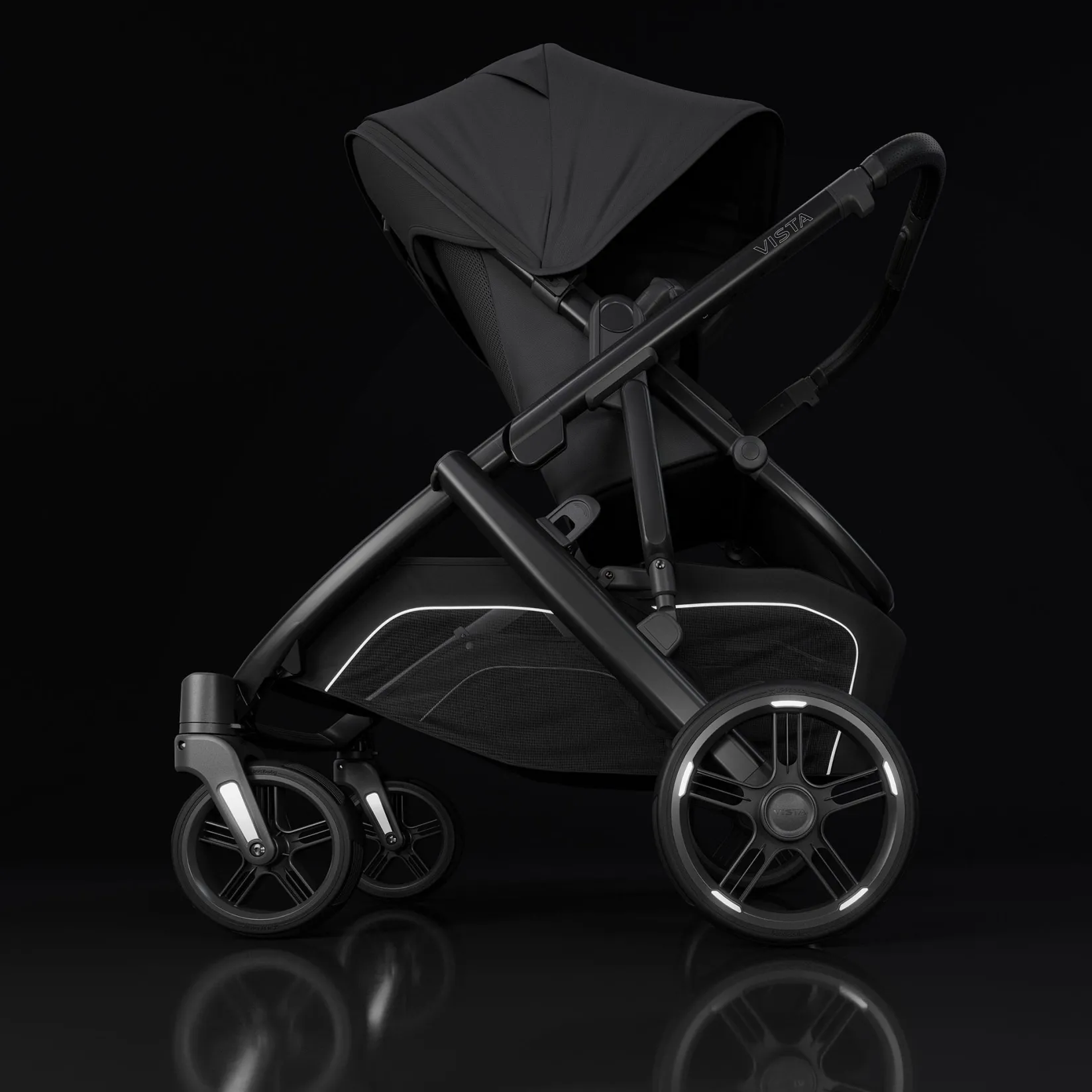 – Reflective accents on the wheels and basket for increased visibility while strolling
