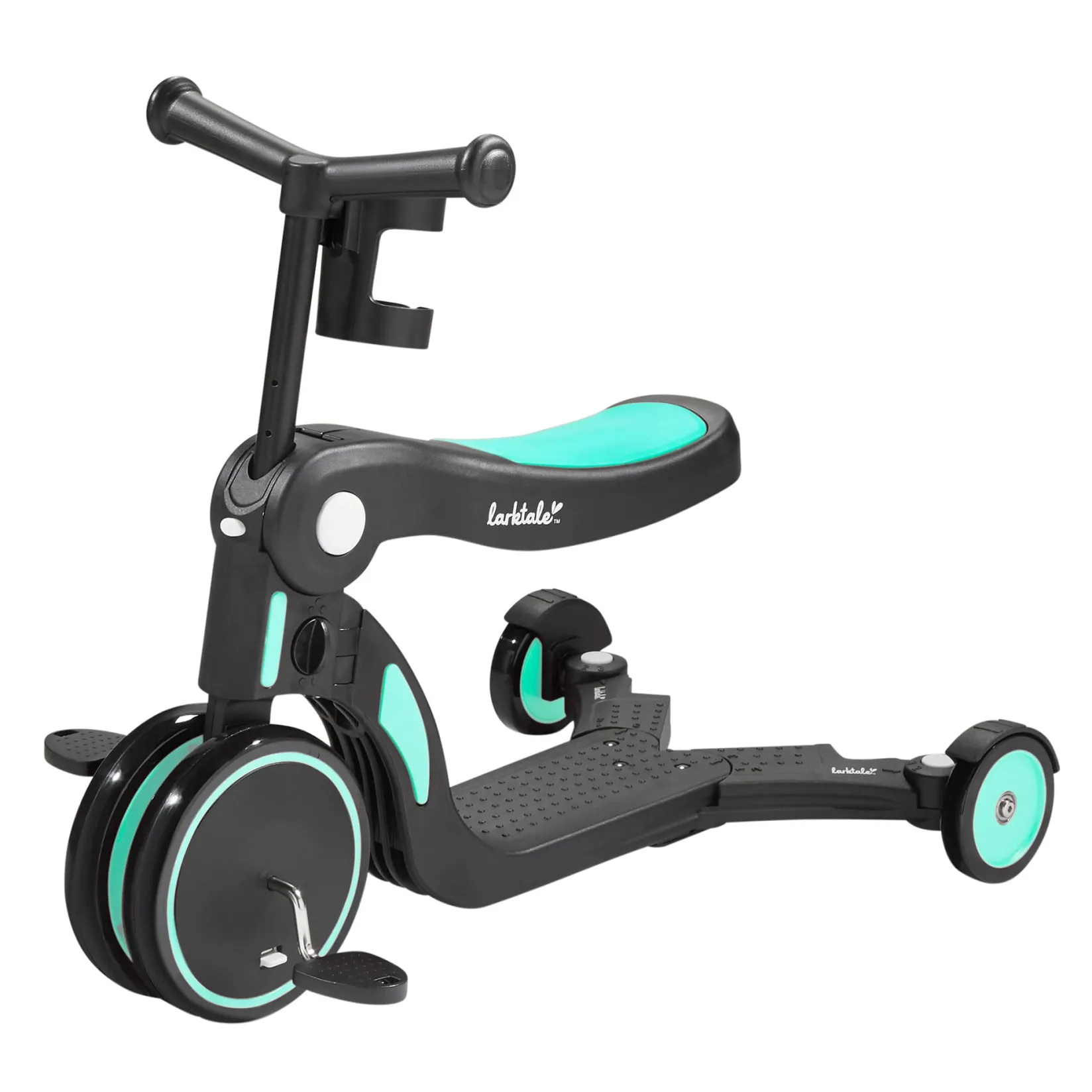 -5-in-1 system converts between Tricycle, Balance Bike, Ride-On, 3-Wheel Scooter and 2-Wheel scooter modes with ease.
