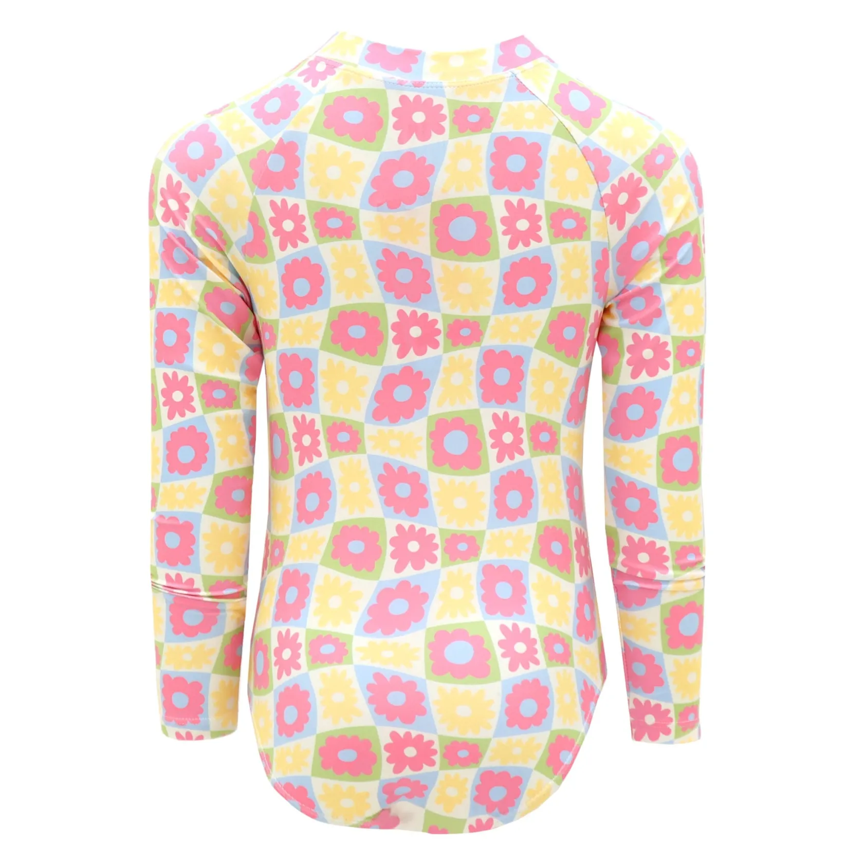Swimsuits>Look Groovy Flowers Long Sleeves Swimsuit 2-14y Ivory