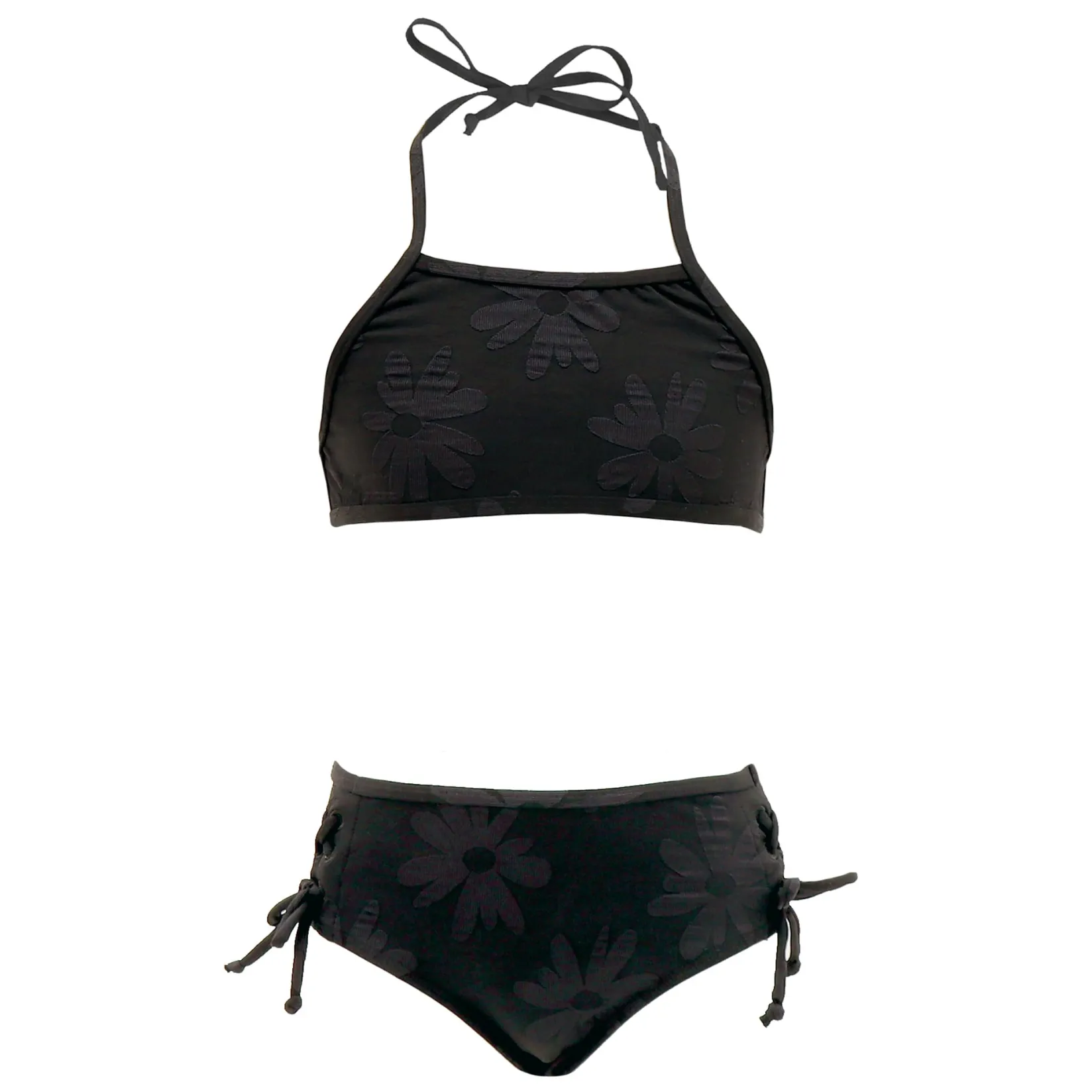 Swimsuits>Look Textured Daisies Bikini 3-14y Black