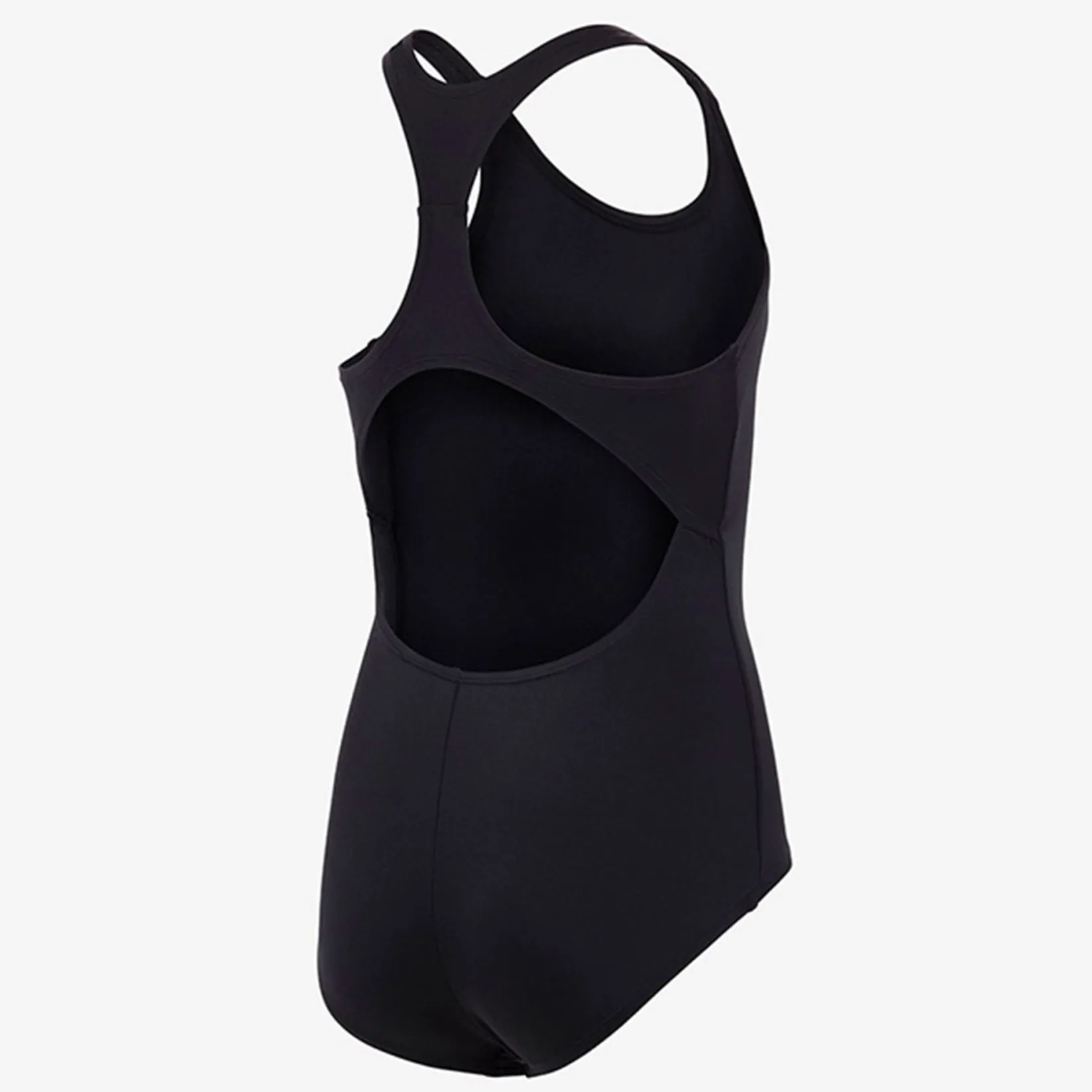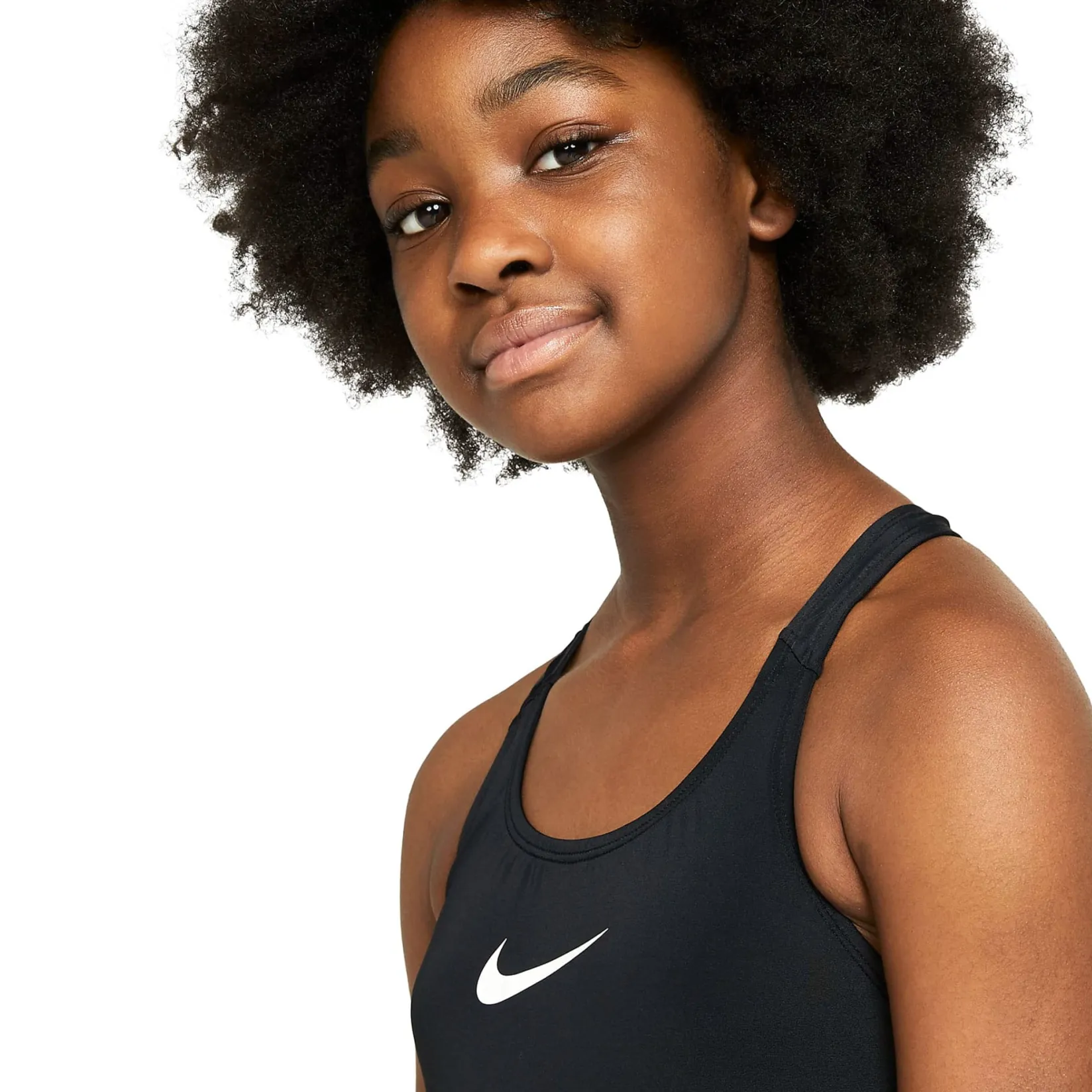 This Girl’s Nike Essential Racerback One-Piece Swimsuit is specially designed for young swimmers. It comes in an ergonomic enhanced fit. Coupled with a racerback, it allows easy mobility during water activities. Standard bottom coverage gives her a worry-free fit so she can concentrate on her sport and play.