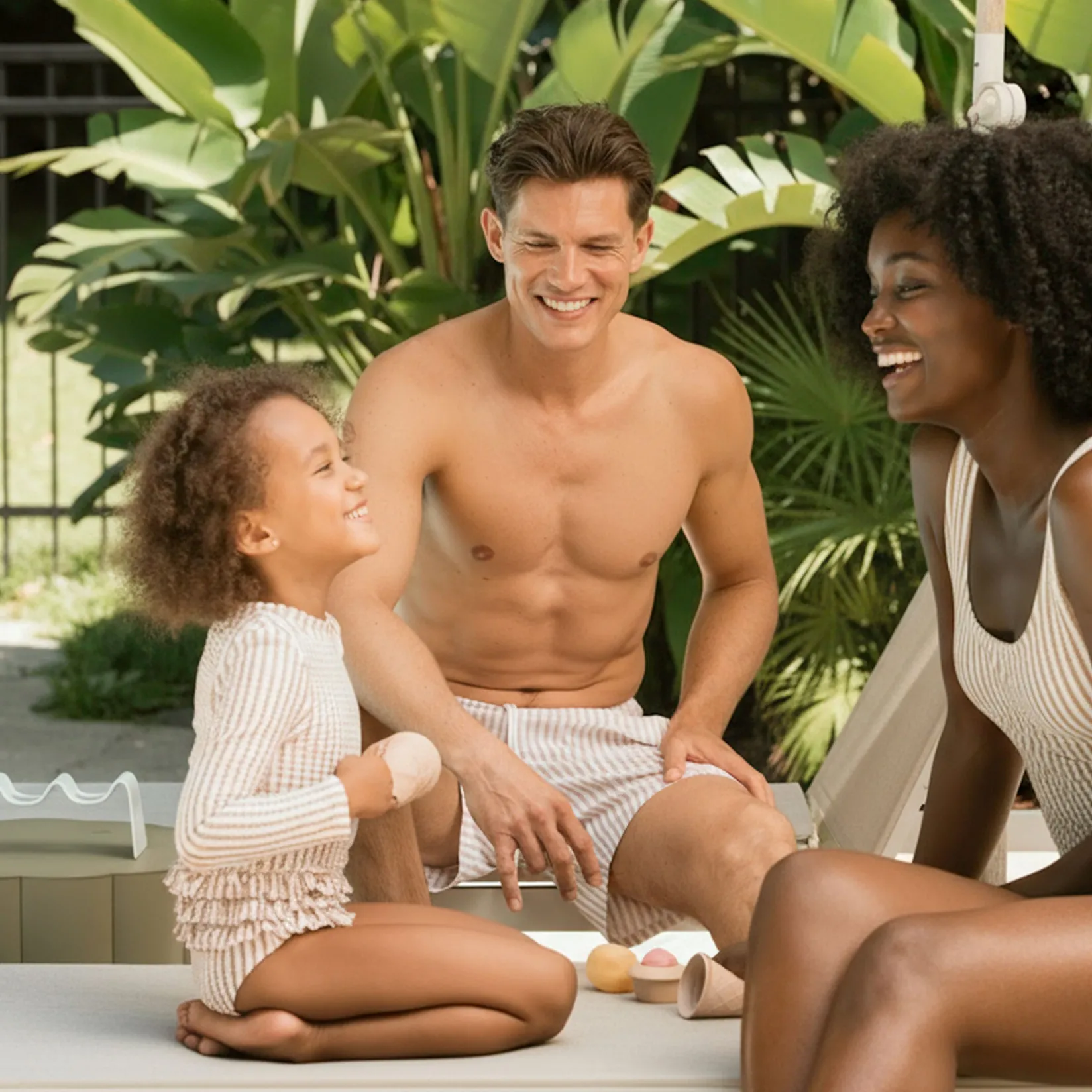 Made for family days by the sea, this taupe stripe, seersucker bodysuit coordinates effortlessly with swimwear available for the whole family. Keeping her comfortable through every giggle and splash, the swimsuit provides full coverage with its long-sleeved design and built-in UPF50+. The front zipper makes dressing quick and fuss-free, so spontaneous dips and sandy adventures are always an option.