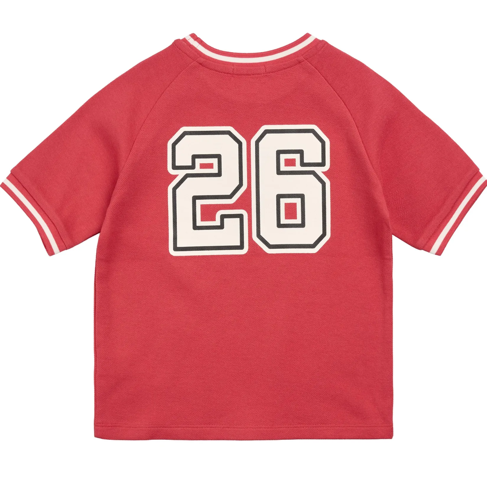 This bold red sports jersey is perfect for making him feel part of the squad when watching the big game. Featuring our own soccer mascot, the top is a playful piece to add to his weekend wardrobe. There’s coordinating shorts in the same range, giving him the chance look and feel like the best player in the town.Â