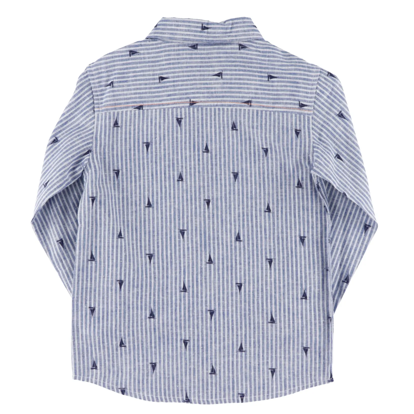 -Printed striped poplin and chambray shirt