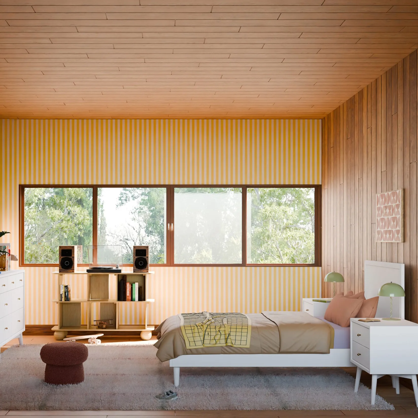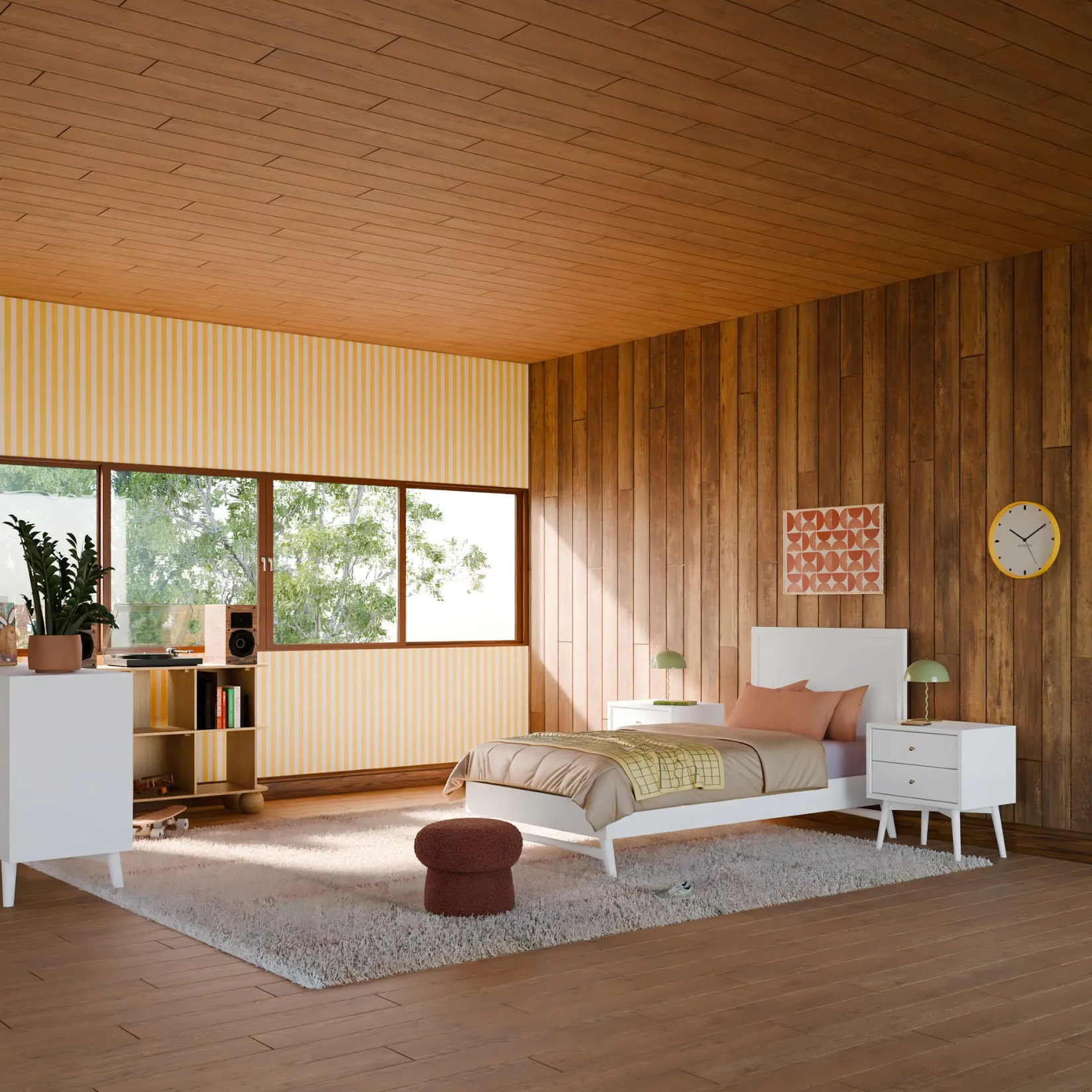 Mid-century modern style meets kid-friendly function in the Palma Twin Bed. With its clean lines and iconic flared legs, this bed brings timeless design to your kiddo’s room, while staying versatile enough to blend with any décor—from playful pops of color to soft, neutral vibes. The low-profile bed frame makes bedtime easy, and for those first big-kid nights, add the removable guardrails (sold separately) for extra safety.