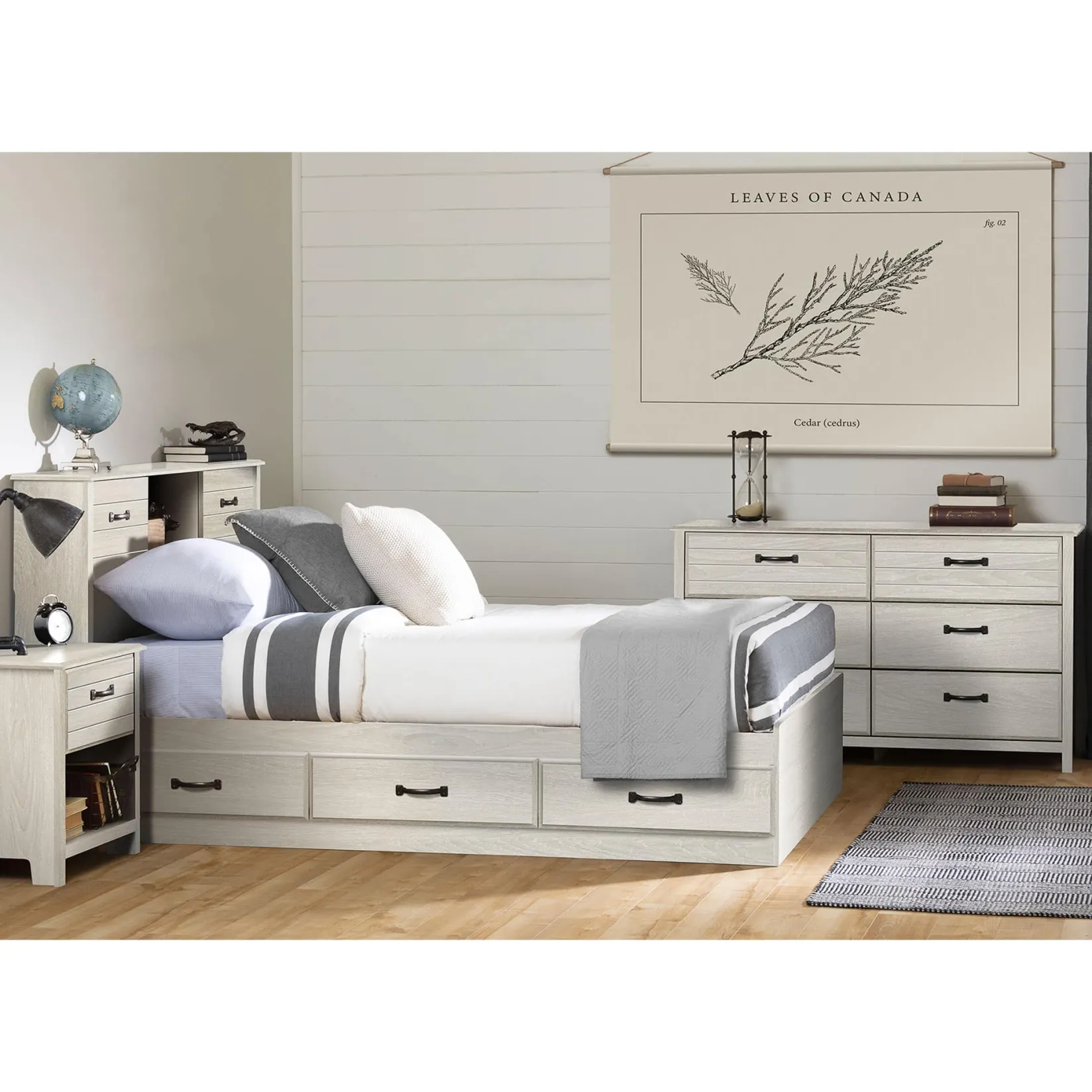 This rich and timeless headboard will help create a soothing atmosphere in your kid’s bedroom. With its many easy to access open storage compartments, this bookcase headboard is perfect for fulfilling bedside storage needs, keeping your reading materials and personal items organized and close at hand when you need them.