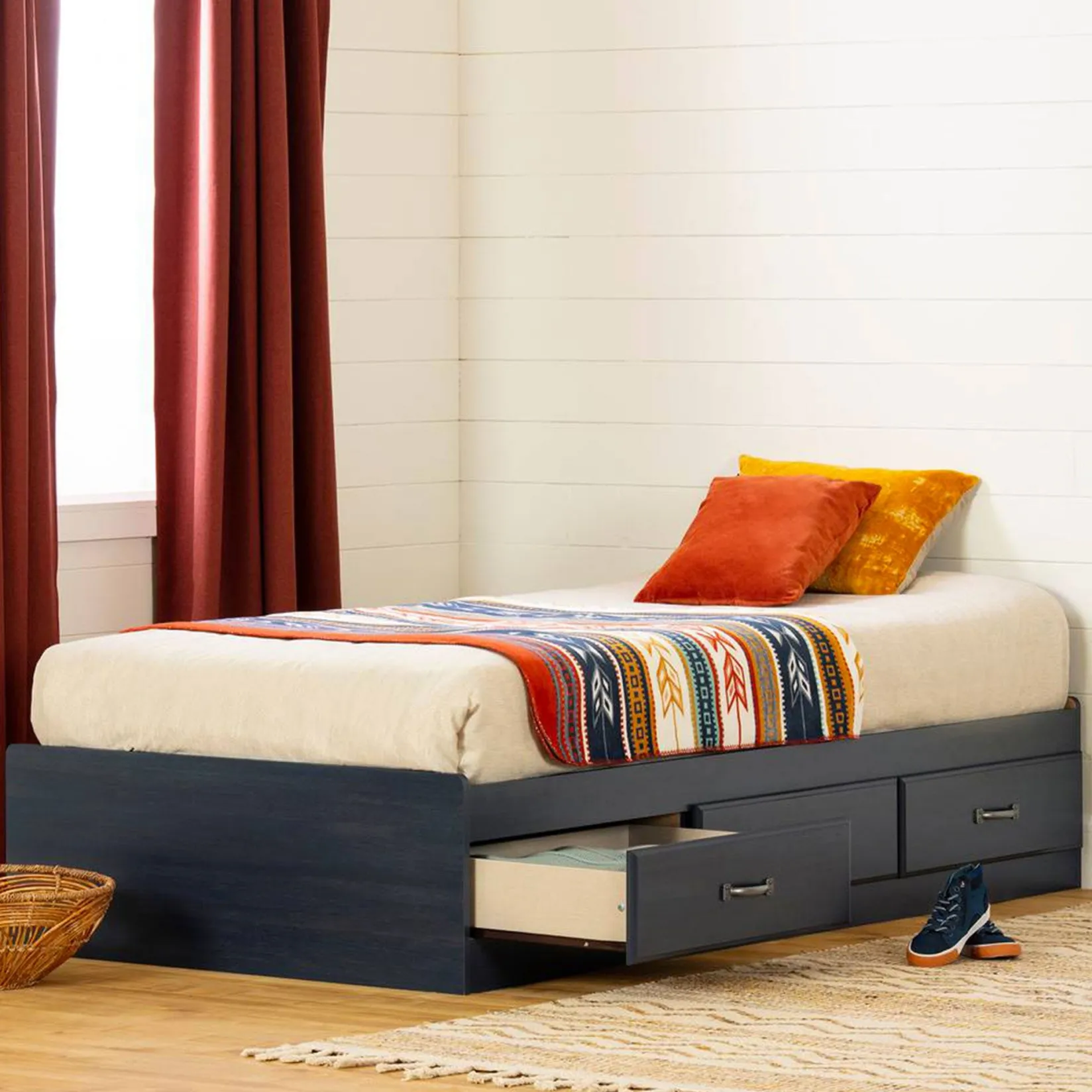 Twin, Full & Queen Beds>South Shore Twin Bed with 3 Drawers Asten – Blueberry