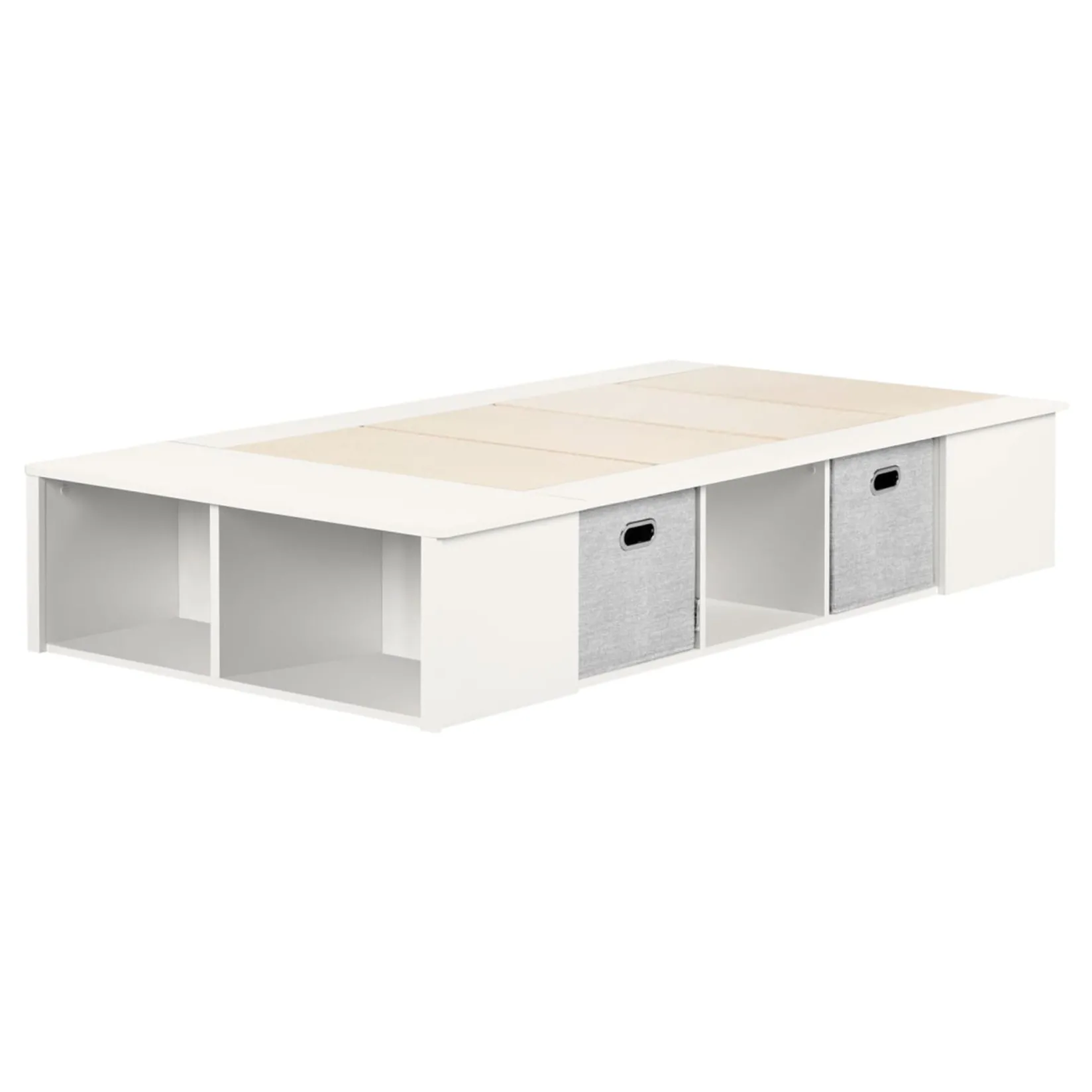 Twin, Full & Queen Beds>South Shore Twin Platform Bed with Baskets Flexible – Pure White