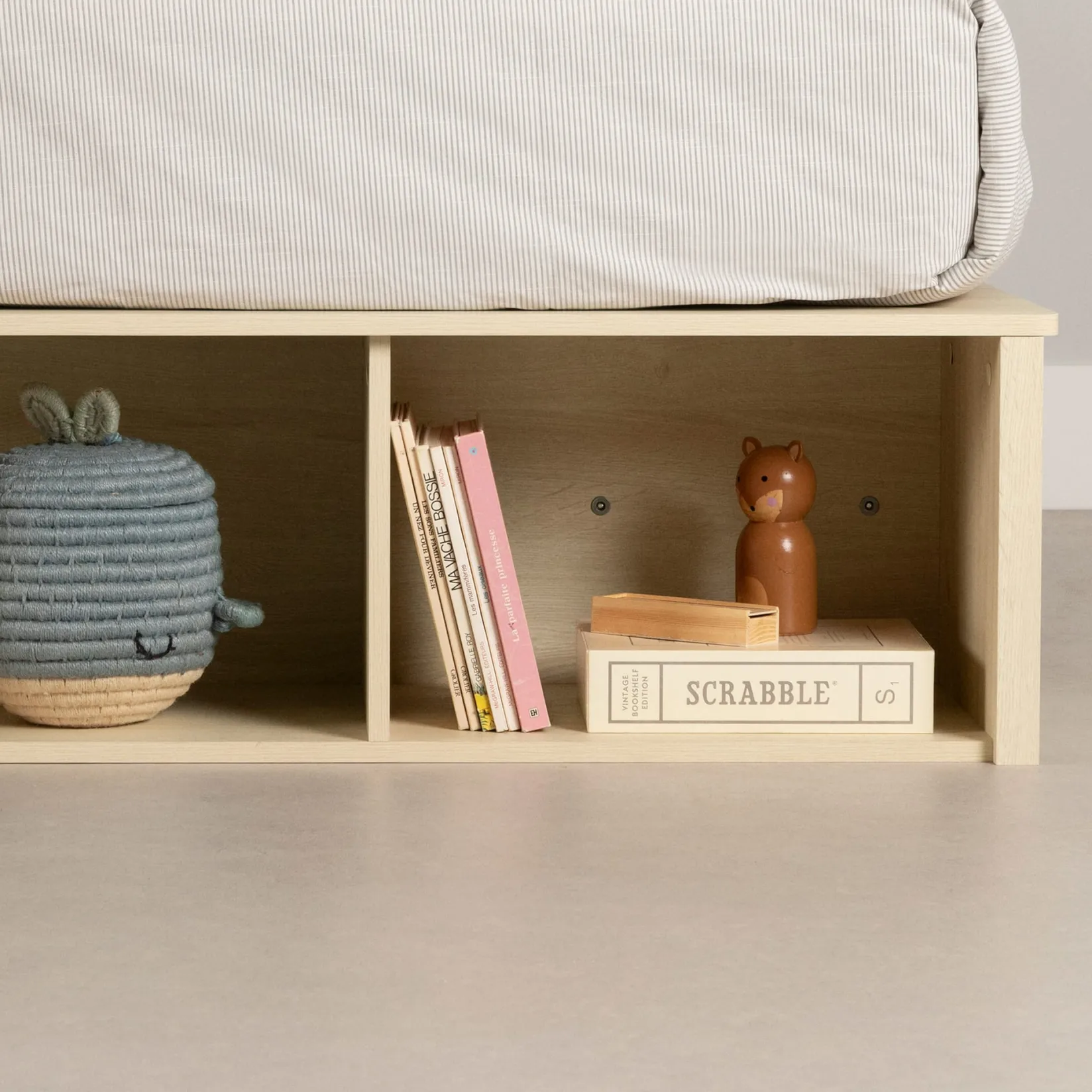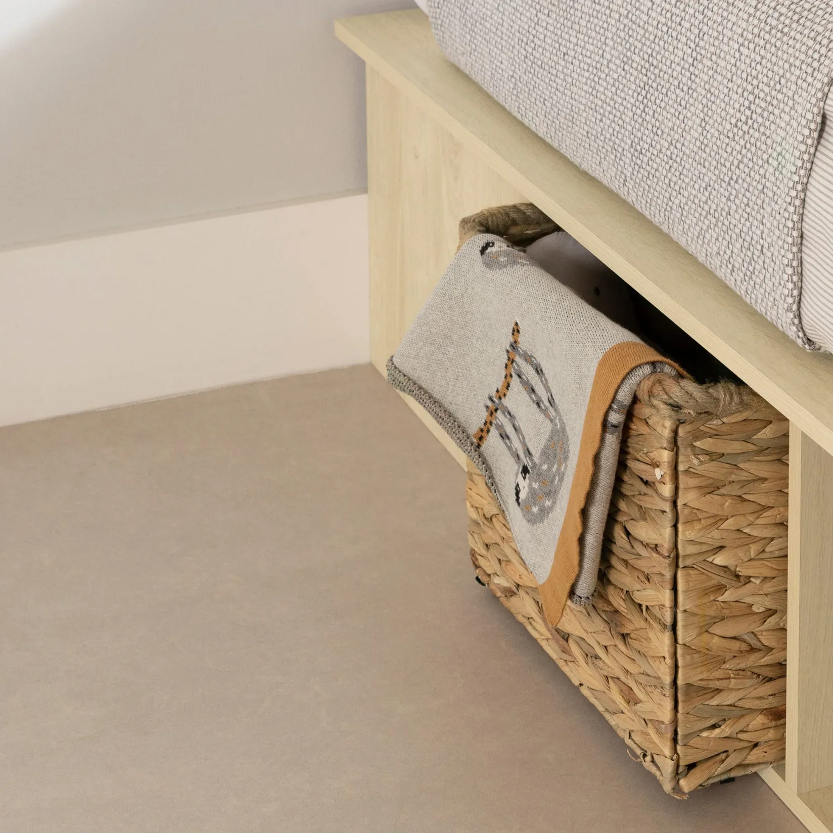To help with organization, and offer closed storage compartments, 2 wicker baskets are included with the bed. They are designed to fit perfectly into the open spaces. This allows you to play with multiple configurations. For example, you can use the drawers to store clothes, books or shoes.